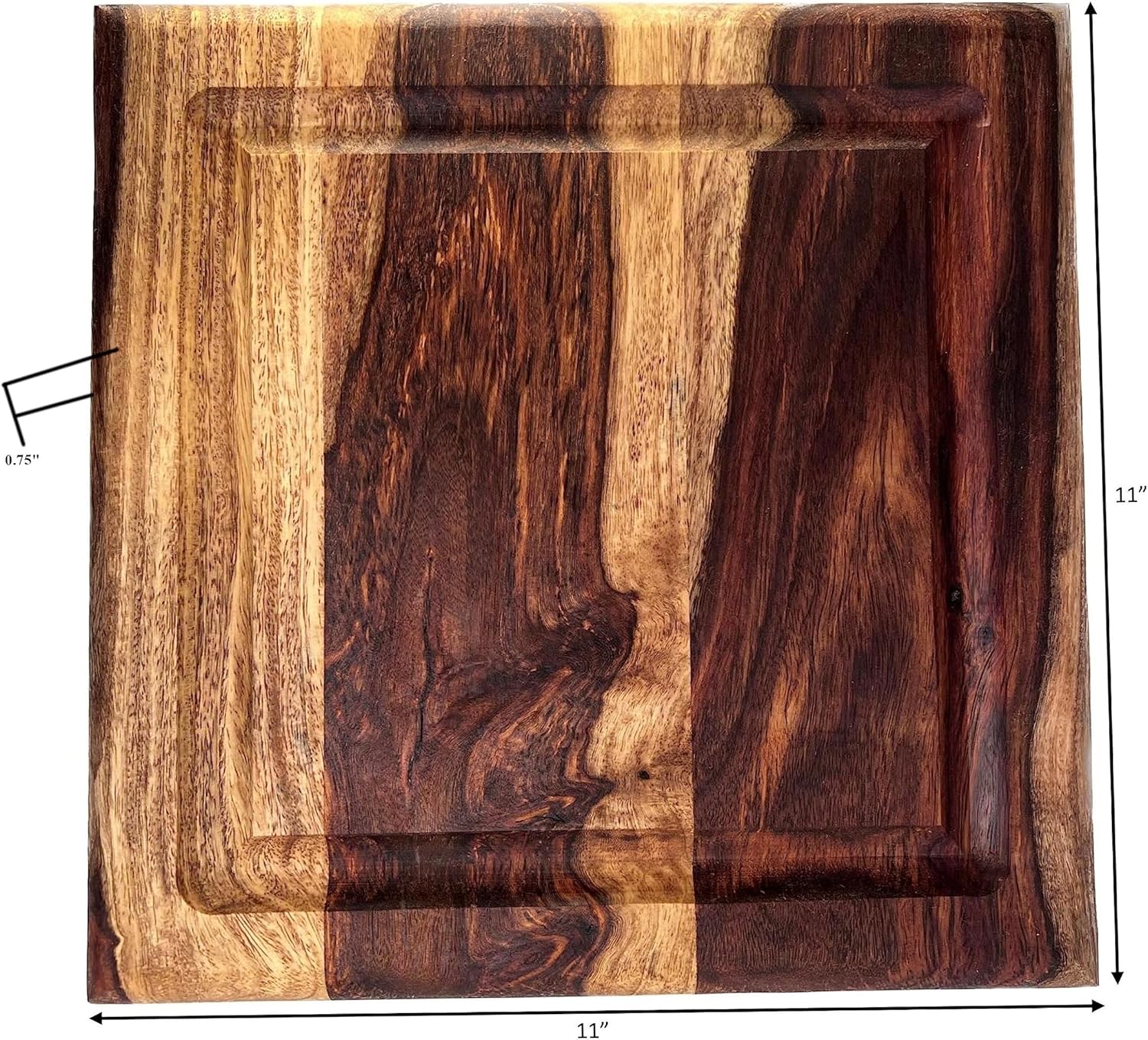 Brown Organic Hardwood Sheesham Cutting Board w/Juice groove | Chopping and Carving Kitchen Countertop | Butcher Block - 11" x 11"
