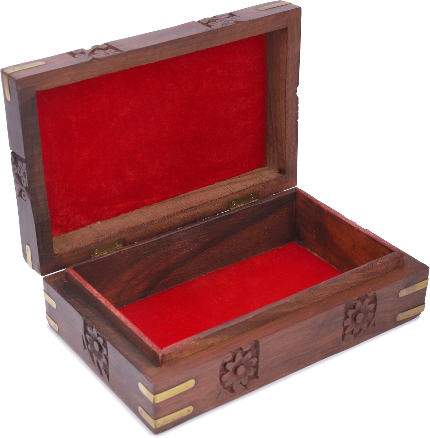 Ajuny Handmade Antique Wooden Jewelry Box | Hand carved Multipurpose Keepsake Rosewood Storage Ladies Retro Travel Mini Organizer | Vintage Decorative Chest Trinket Holder Gift (8x5x2.5 Inch)