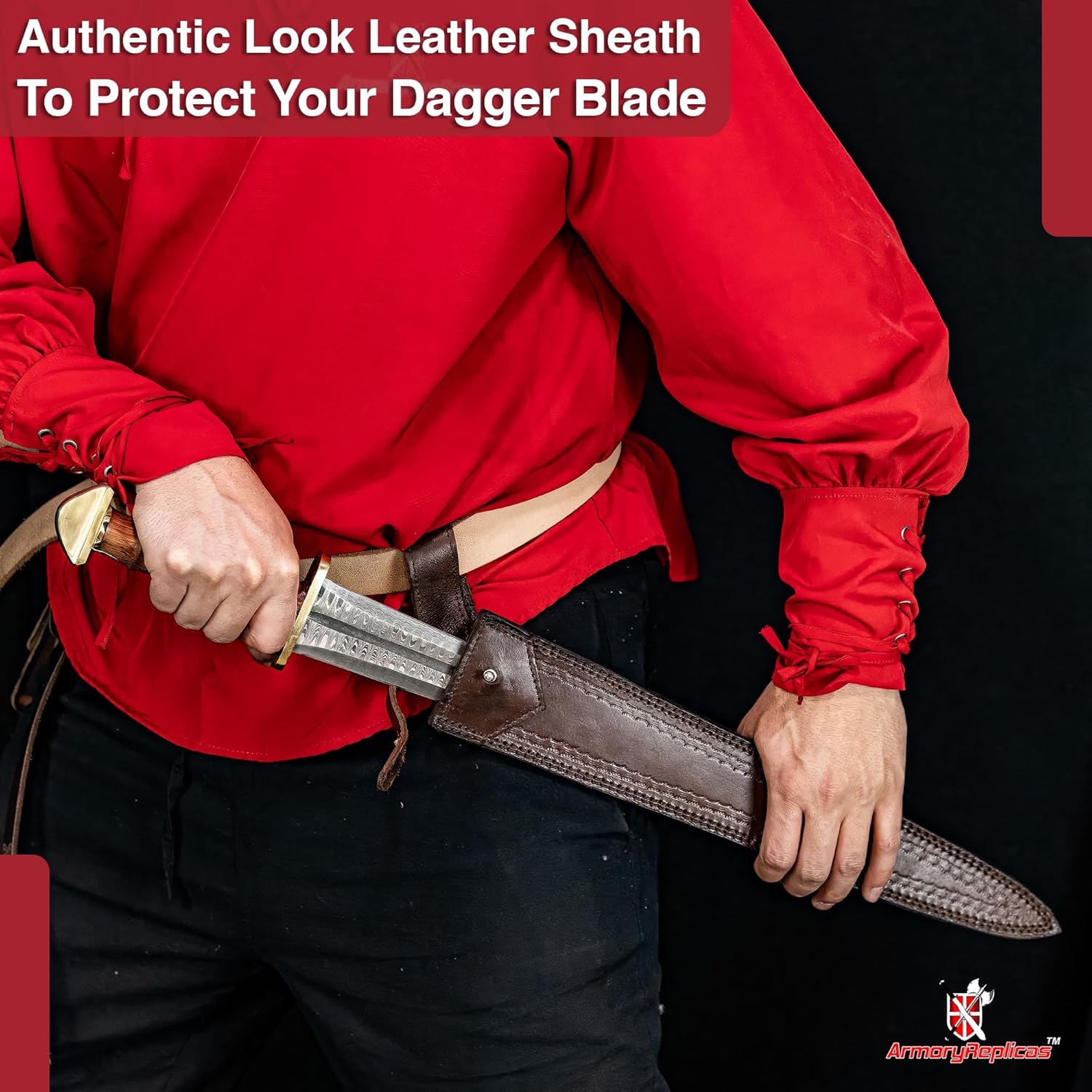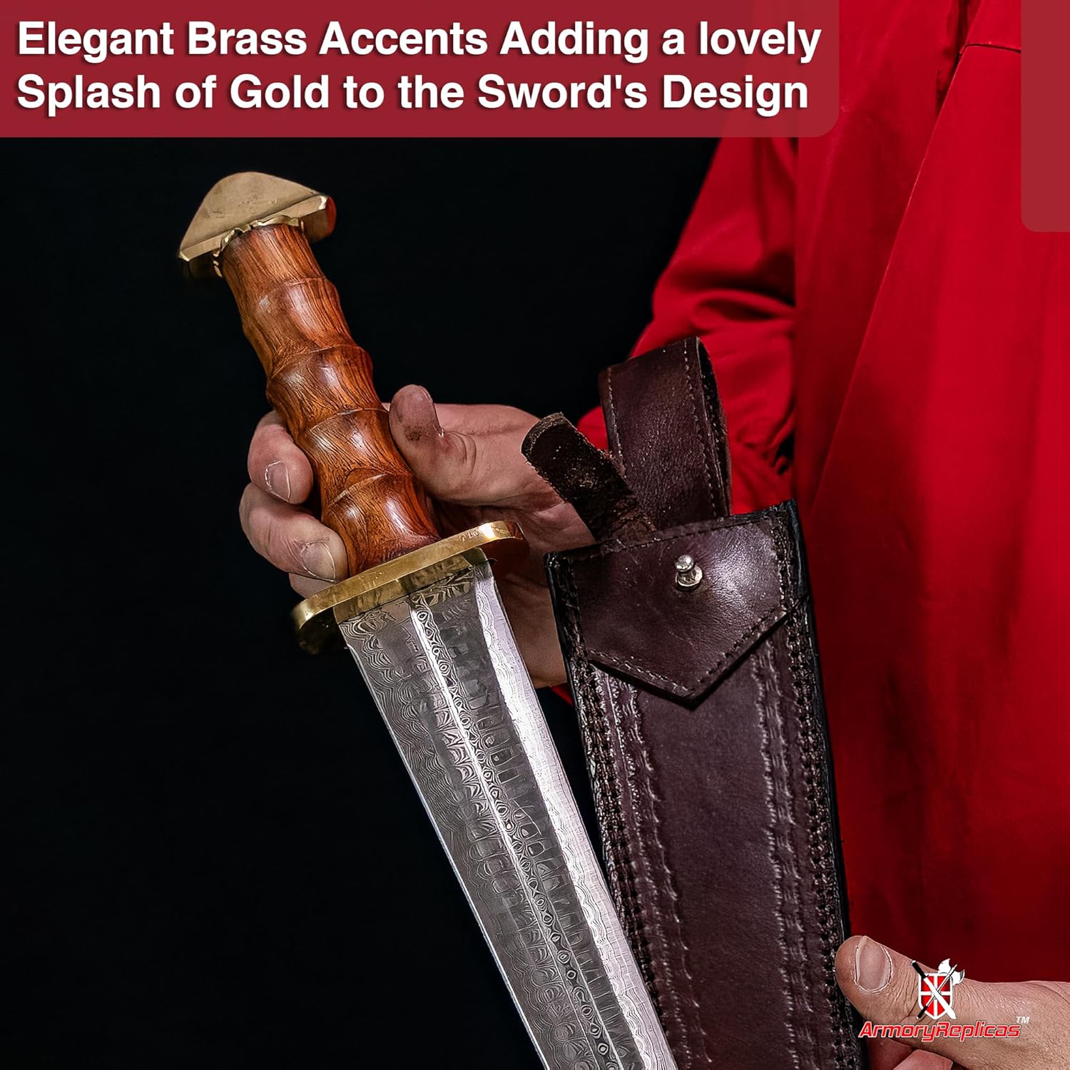 Armory Replicas™ - Damascus Steel Hand-Forged Medieval-Inspired Dagger Short Sword with Authentic Sheesham Wood & Brass Hilt - Premium Collectible for Historical Enthusiasts