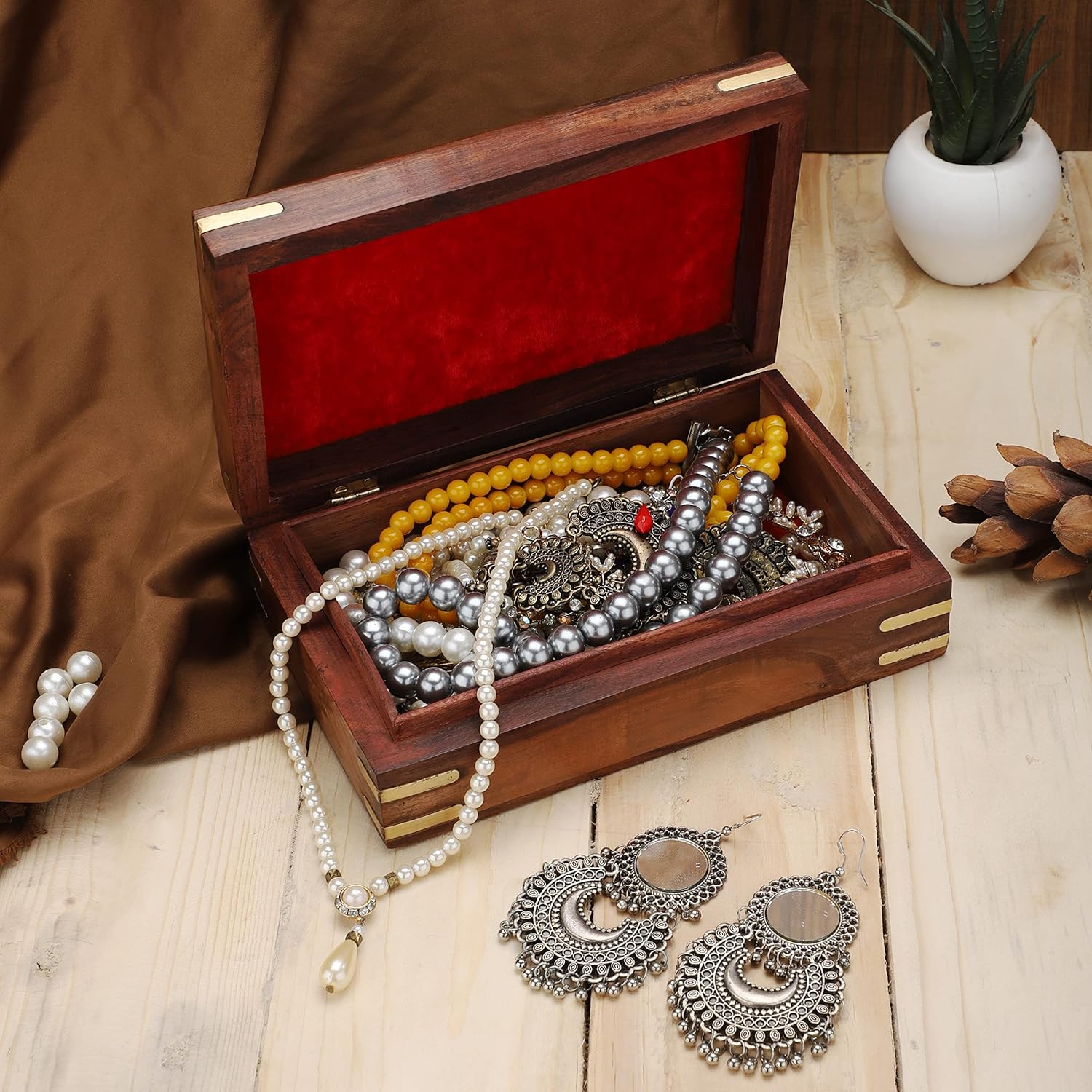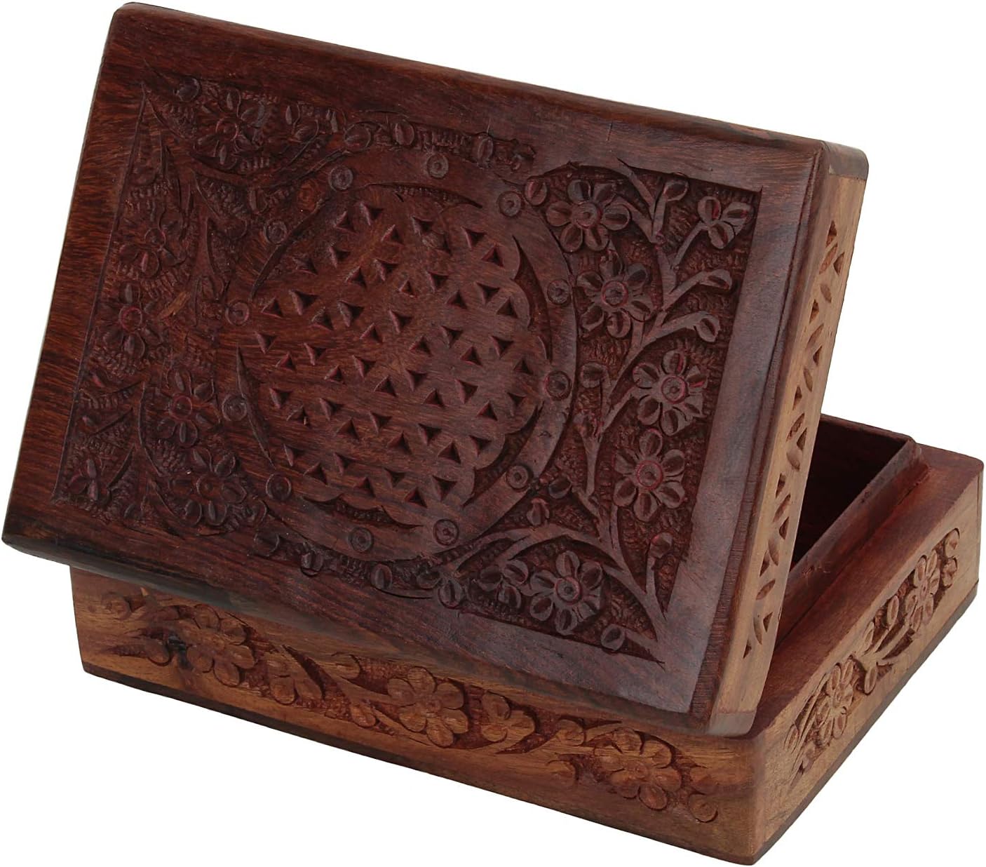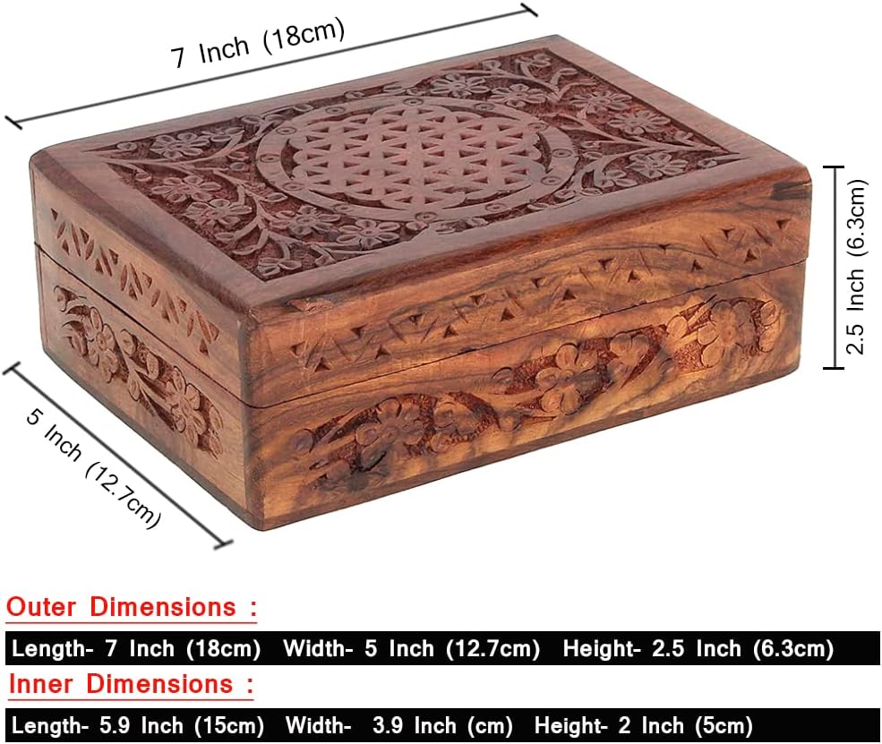 Ajuny Handmade Wooden Jewelry Box for Women - Floral Pattern Hand Carved, Solid Multipurpose Keepsake Storage Travel Organizer | Vintage Decorative Chest Trinket Holder Gift 7x5 Inch
