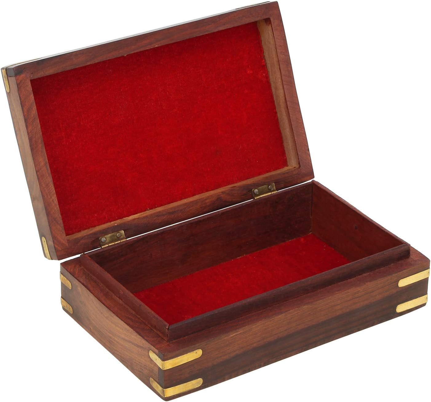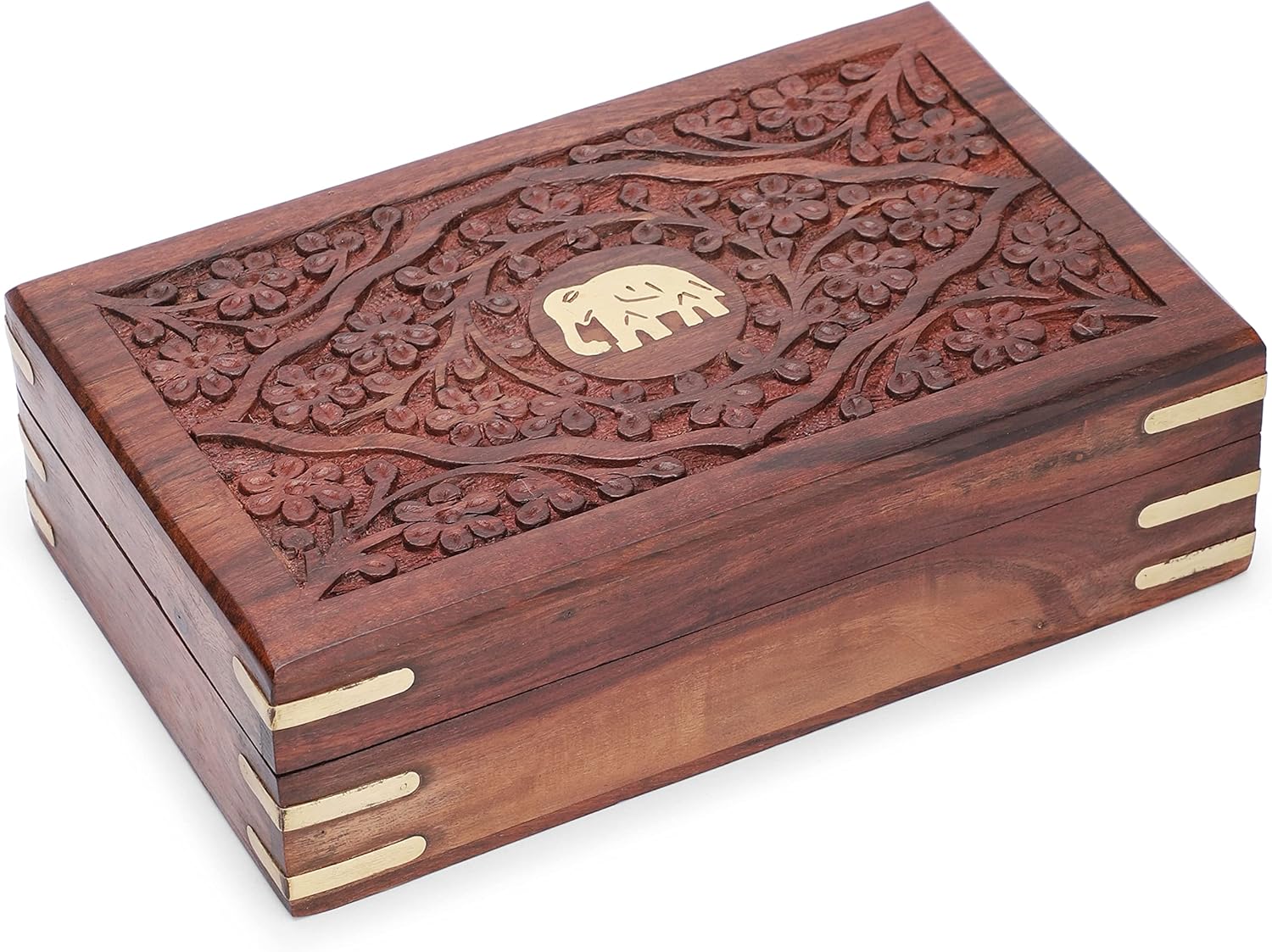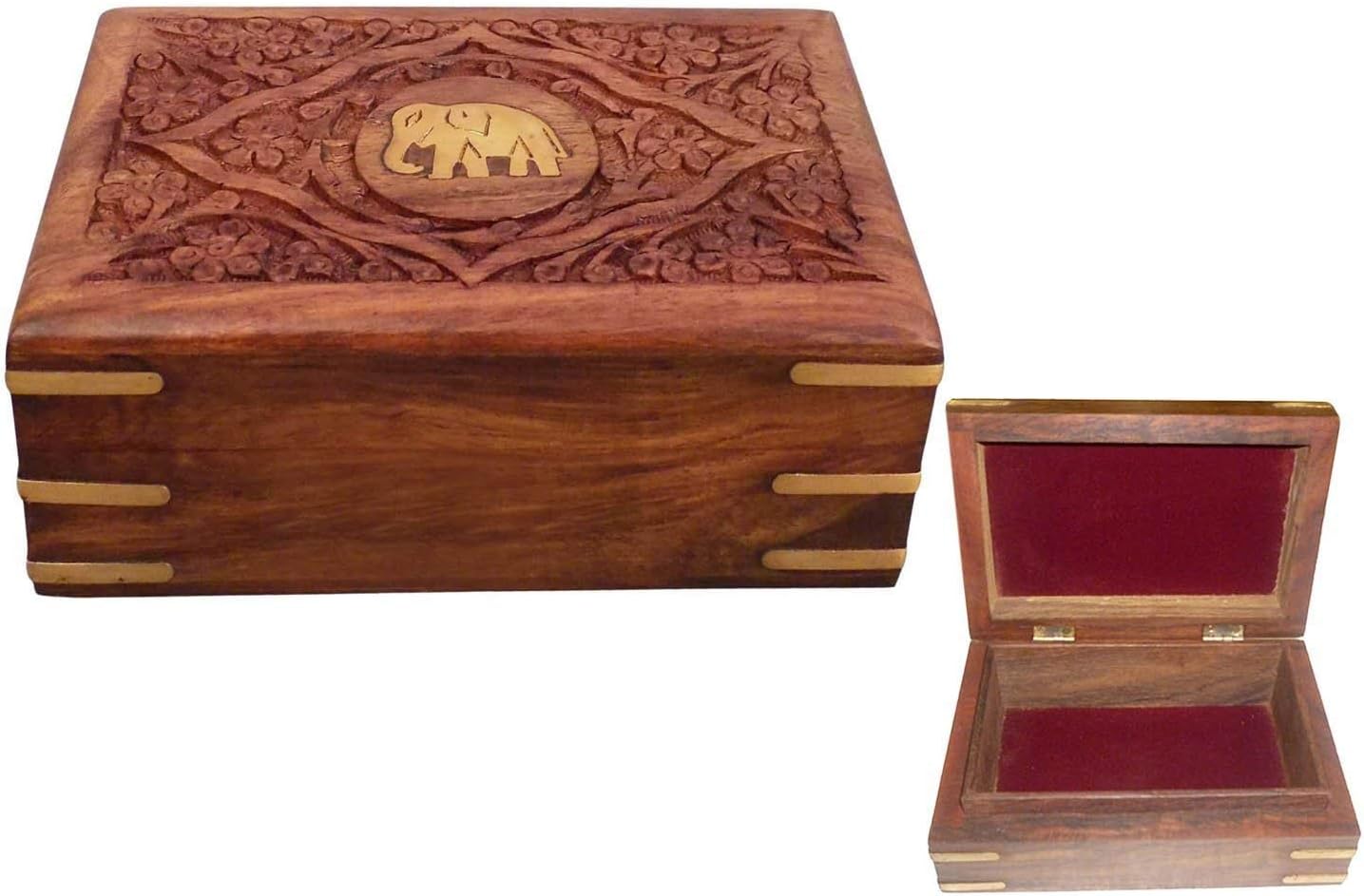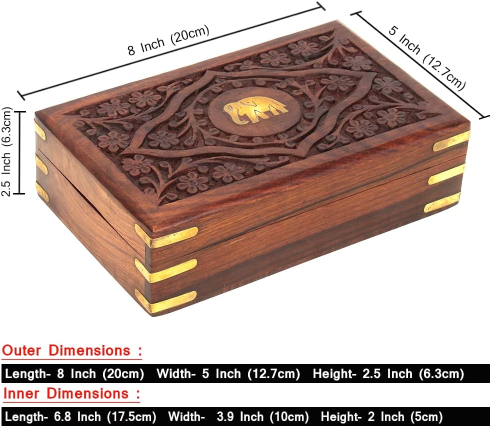 Ajuny Handcrafted Decorative Wooden Jewelry Box Elephant Embossed Design Solid Multipurpose Keepsake Storage Travel Organizer Treasure Chest Trinket Holder Great Gifts 8x5 Inch