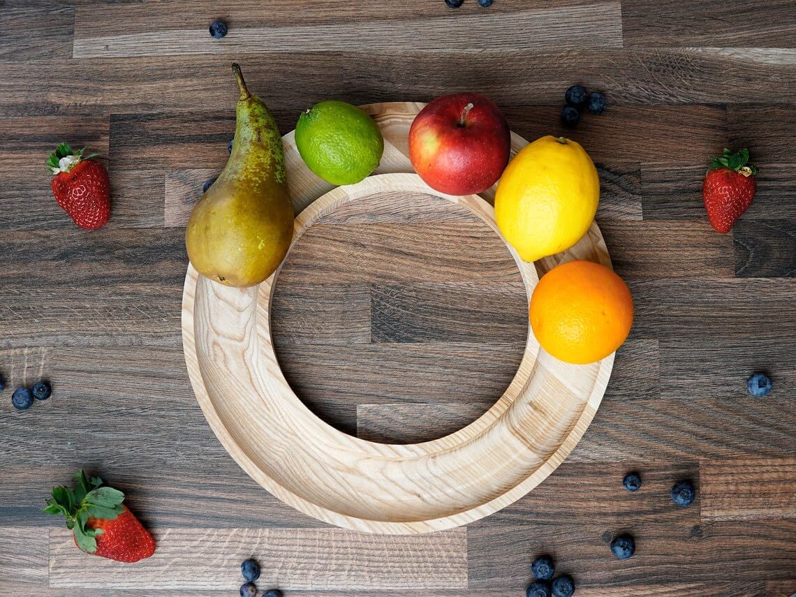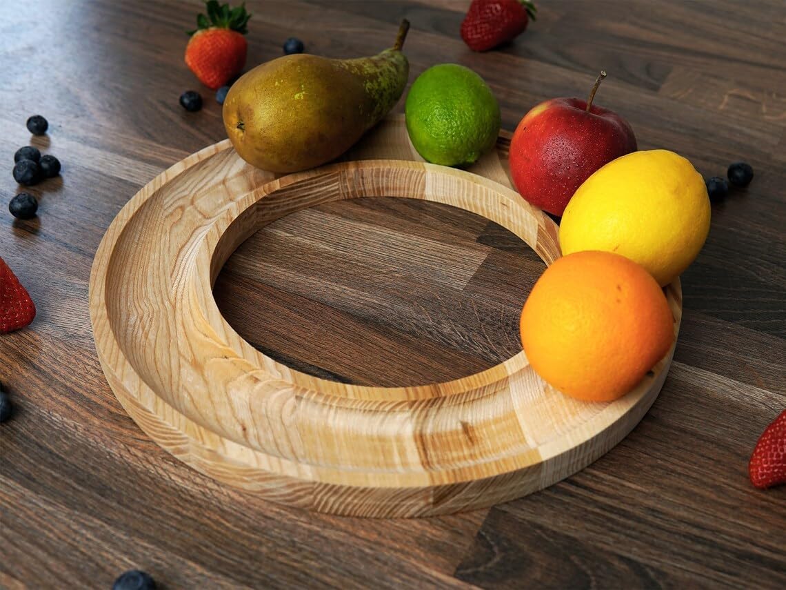 Sheesham Wood Serving Trays - Round Decorative Fruit Tray Platter for Kitchen Counter and Dinning Table - Handcrafted Charcuterie Tray Housewarming Gifts