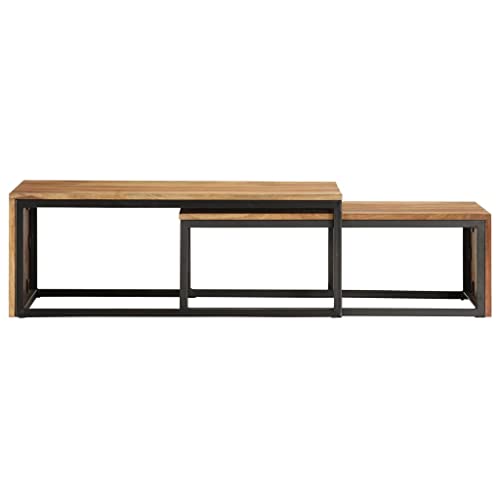 Nesting Tables 2 pcs Solid Sheesham Wood,Vintage Nested Coffee Table Set of 2, Solid Sheesham Wood and Metal, for Living Room and Home Decor Accent Coffee Tables for Home & Kitchen