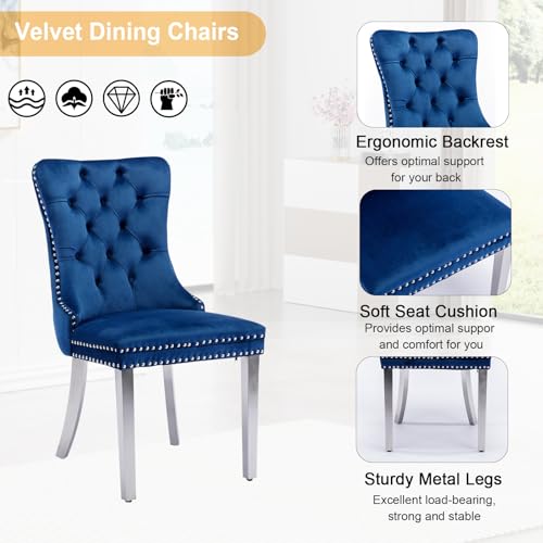 Marble Dining Table Set for 4, Dining Room Table Set for 4, Modern Dining Table Set with 70" White Marble Dining Table & Grey Velvet Chairs, 5 Piece Dining Table Set for Kitchen Dining Room Dinner