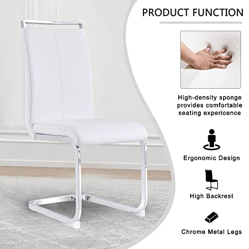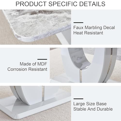 Dining Table Set for 4, Marble Kitchen Table and Chairs for 4, Modern Dining Room Table Set with 63" Grey Marble Dining Table and 4 White PU Leather Chairs, 5 Piece Dining Table Set for Dinner