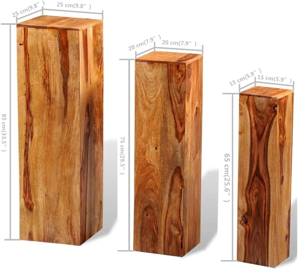 3 Piece Plant Stands Solid Sheesham Wood Brown,Suitable for displaying Potted Plants in Various Living Spaces, Indoors or Outdoors Gardening Accessories,Plant Container
