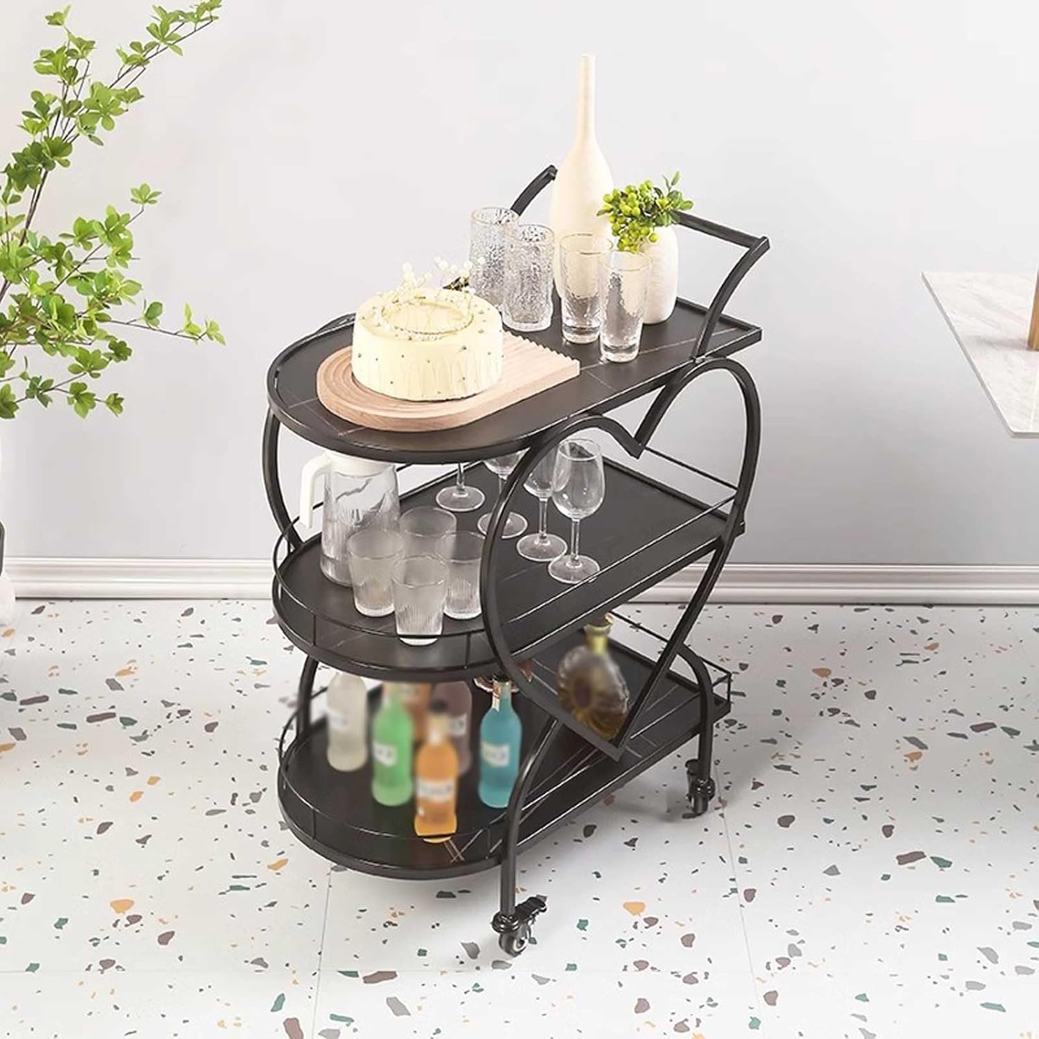 Bar Serving Cart for Hotels Creative Restaurant, Modern Design 3 Tiers Cart On Wheels Serving Drinks Trolley Bar Catering Trolley Storage