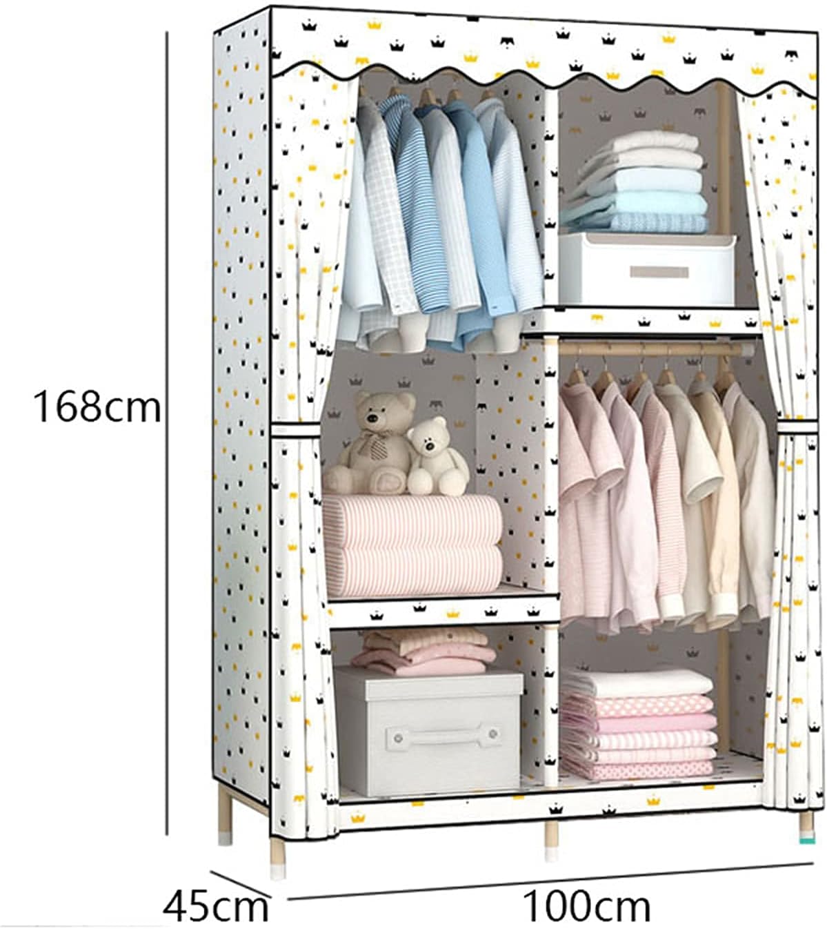 Portable Wardrobe Cloth Wardrobe Simple Wardrobe,Multifunction Creativity Wardrobe Solid Wood Stable Wardrobe Rail White Girl,168 * 150 * 45cm Portable Cloth Hanger