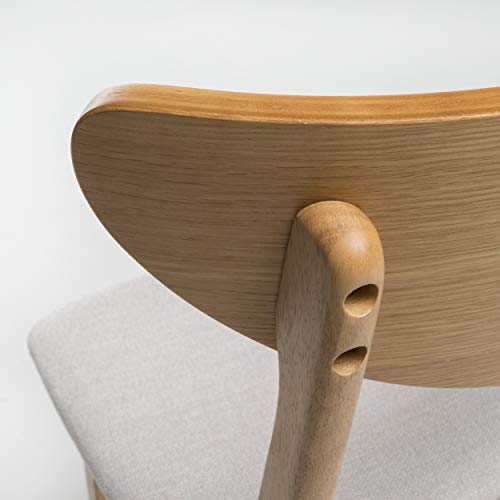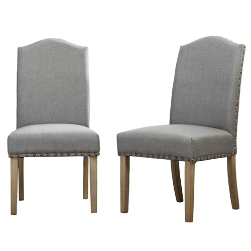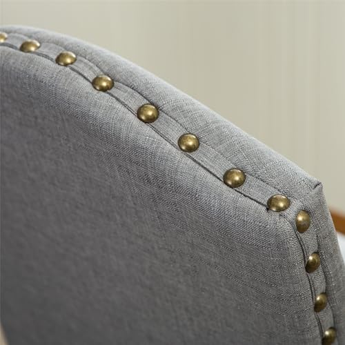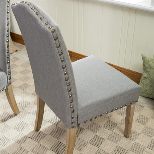 Upholstered Dining Chairs Set of 2, Brass Nailhead Trim, Durable Oak Hardwood Frame, Driftwood Finish, Soft and Comfortable Linen and Cotton Fabric, for Dining Room, Kitchen, and Living Room (Grey)
