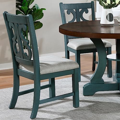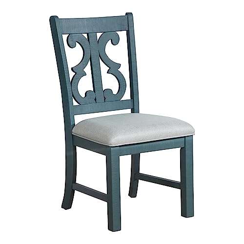 24/7 Shop at Home Clio ransitional Wood Fabric Padded Side Chair, Set of 2 for Dining Room, Kitchen, Antique Light Blue and Oak Brown