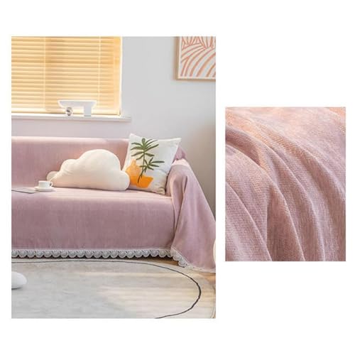 Sectional Couch Cover Thick Chenille Sofa Cover Modern Simple Tassel Edge Couch Cover Couch Protector Non Slip Skin-Friendly Waterproof L Shape Sofa Protector for Dogs Cats(160x260cm/63x102in, Pink)