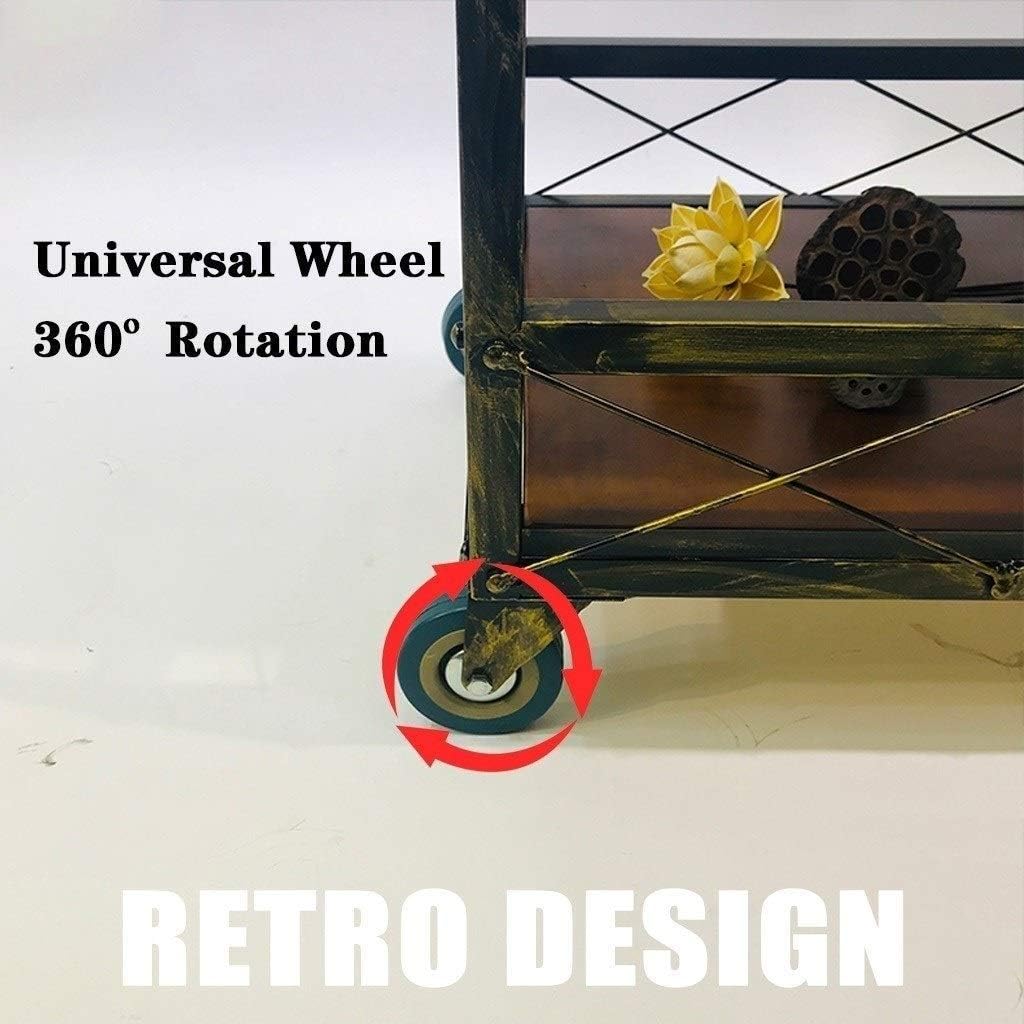 Rolling Cart Kitchen Trolleys Industrial Desk Storage Carts Tool Trolley Catering Trolleys BBQ Car Wine Rack Retro Design 3 Tiers for Kitchen, Home, Office