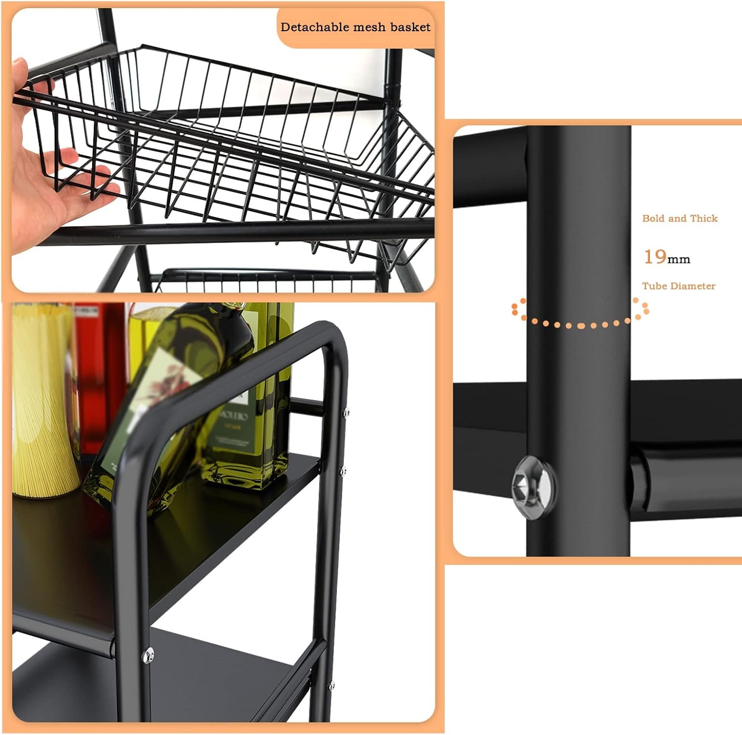 Rolling Dinning Cart Serving Cart for Cake Drinks 3-Tier Kitchen Trolley Wine Cart,Storage Cart on Wheels Space Saving for Home