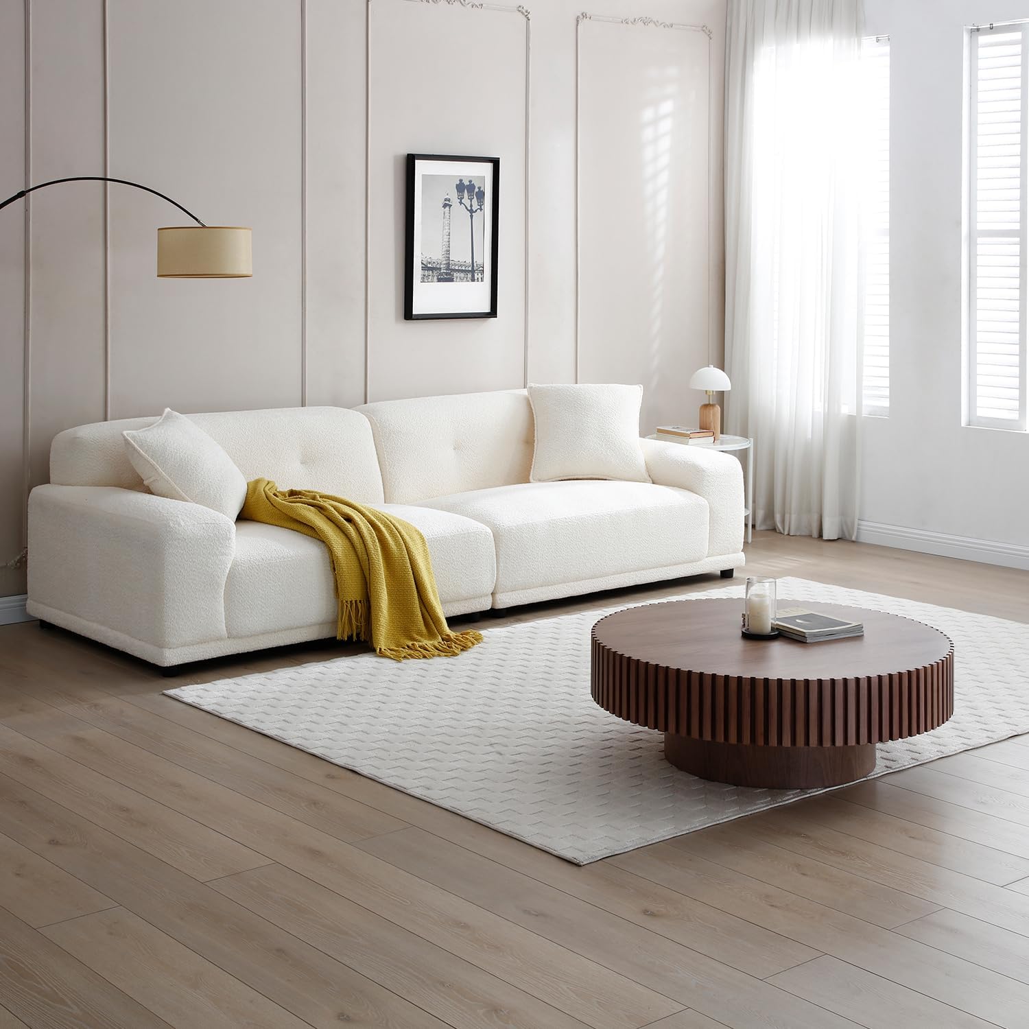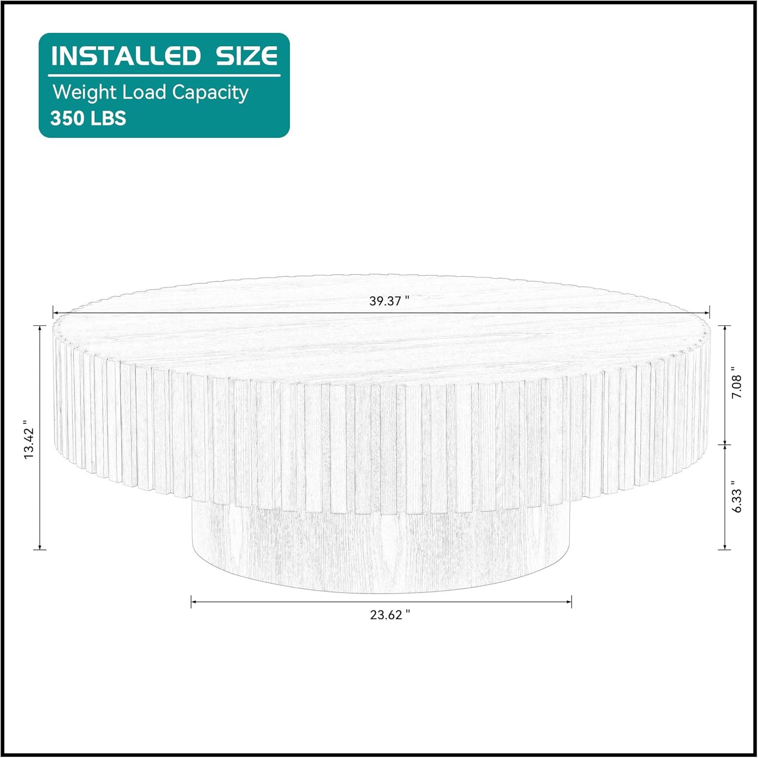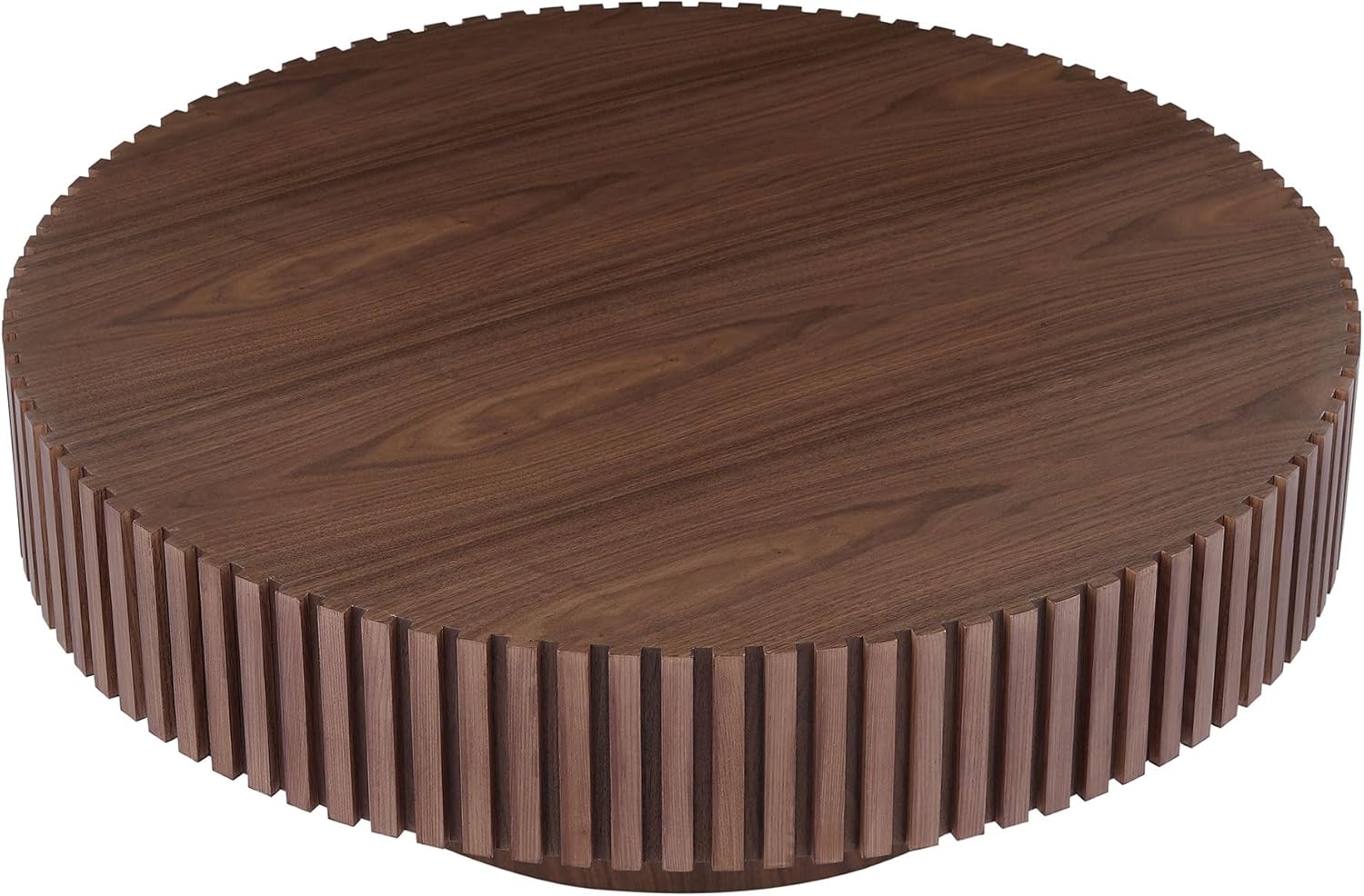 kevinplus 39.37'' Walnut Round Coffee Table Modern Wood Coffee Table for Living Room, Contemporary Circle Fluted Drum Coffee Table, No Assembly, Walnut (ø39.37'' x 13.42'')