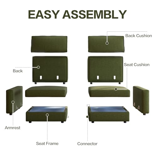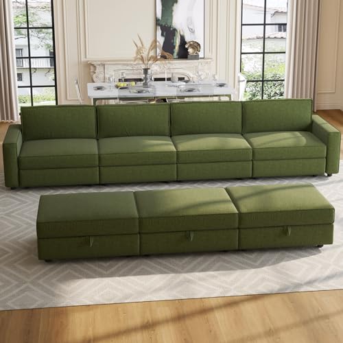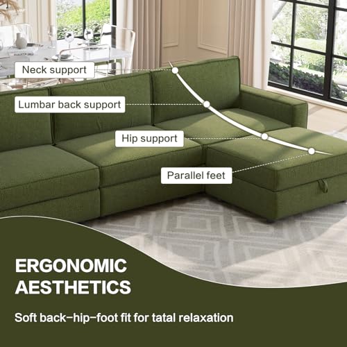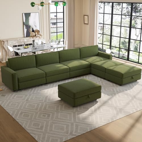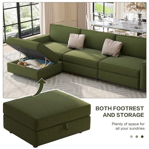 5 Seater Modular Sectional Sofa U-Shaped Couch, Modern Oversized Sectional Sofa with Ottoman, 5 Seat Sofa Couch with Storage for Living Room, Green
