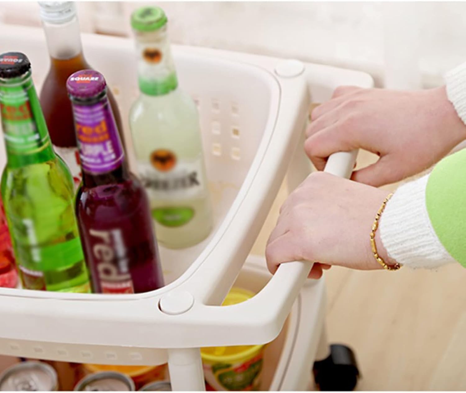 3- Tier Home Serving Cart Mobile Bar Cart with Handle and Lockable Wheels,Kitchen Trolley Rolling Utility Cart Ideal for Kitchen Living Room Hotel Club