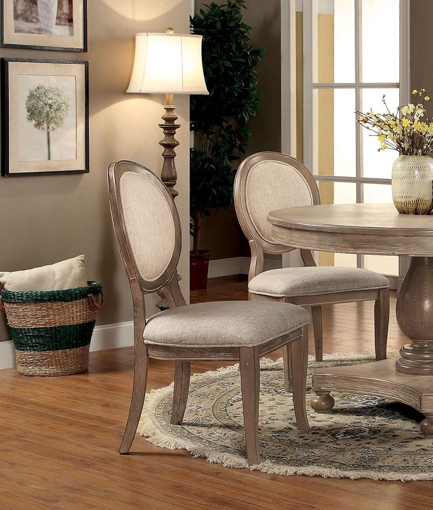 Transitional Rustic Oak and Beige Side Chairs Set of 2 Chairs Dining Room Furniture Padded fabric seat Elegant Kitchen Dining Room
