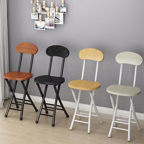 18" Folding Stool with Backrest, Outdoor Travel Stool, Portable Foldable Barstools, for Kitchen/Camping/Fishing/BBQ(White oak -black)