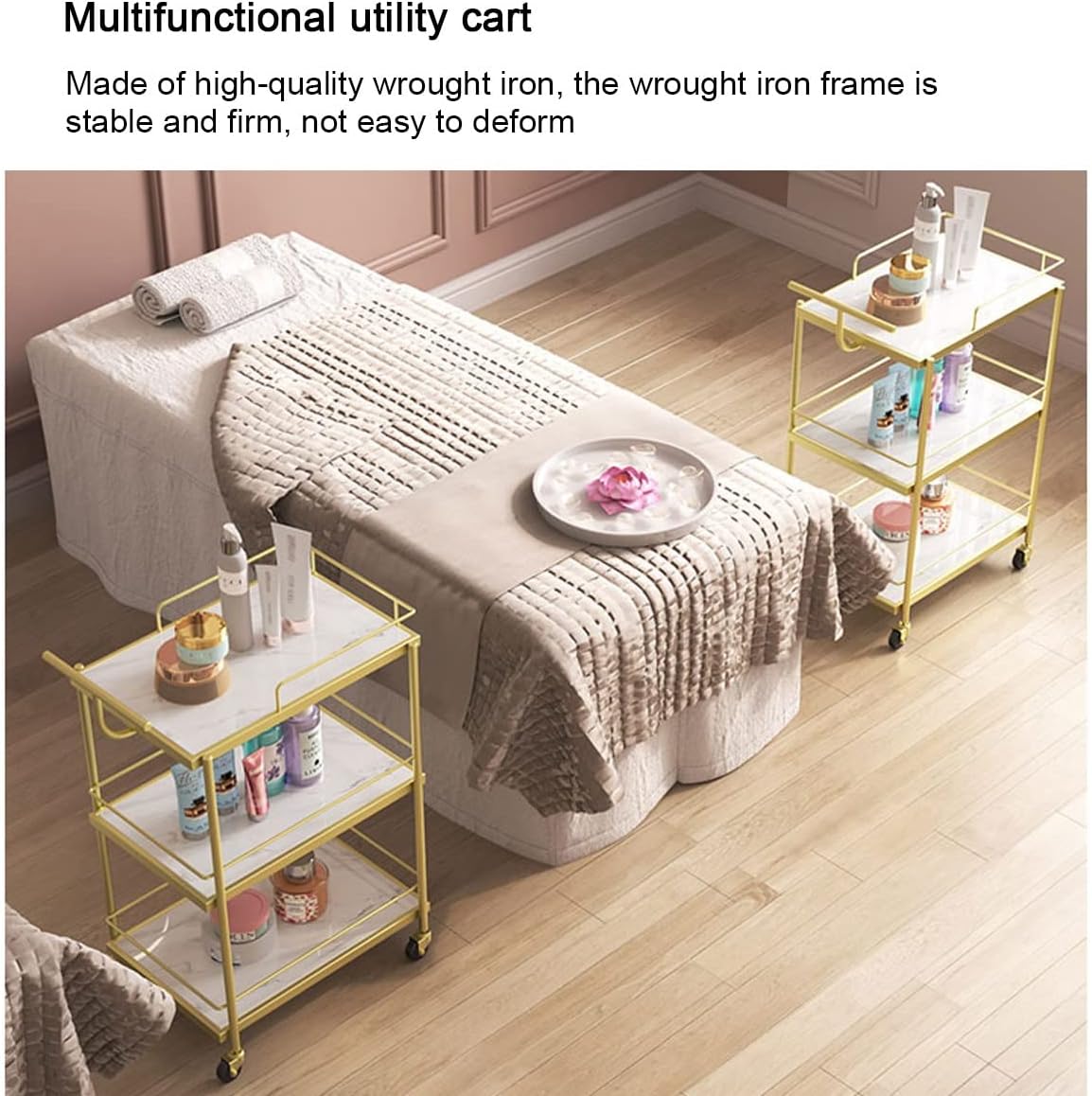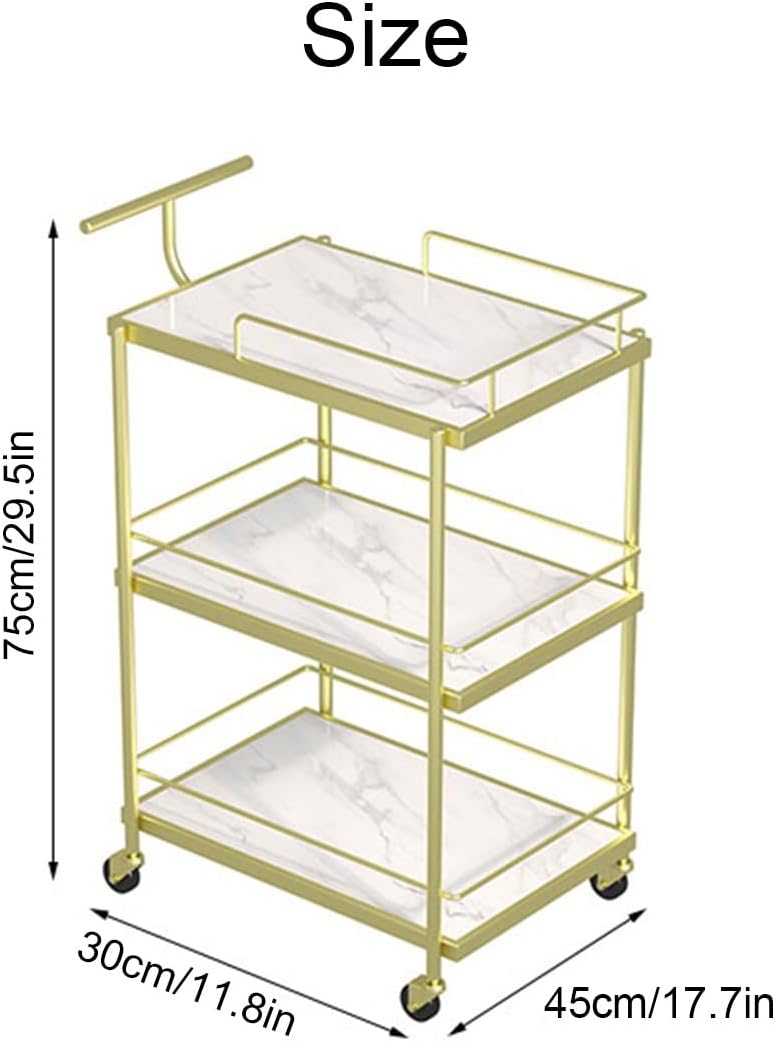 3 Tier Serving Trolley Cart/Bar Cart/Drinks Trolley/Beauty Trolley,Metal Rolling Cart for Home Built-in Handle,Kitchen Utility Storage Trolley