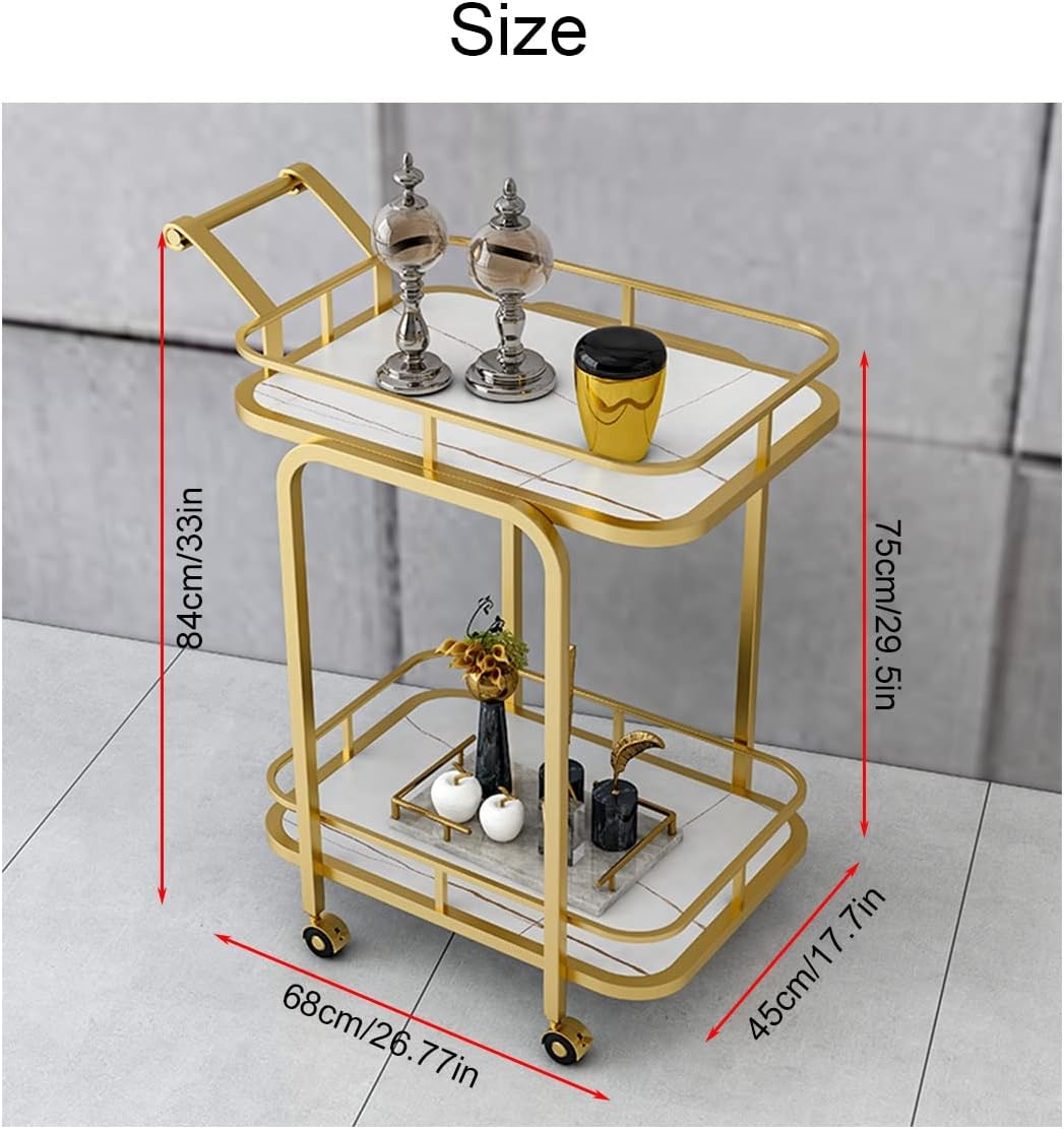 Kitchen Serving Cart Mobile Bar Cart Tea Trolley 2-Tier Rolling Liquor Wine Carts On Wheels,Ideal for Kitchen,Living Room Office Hotel
