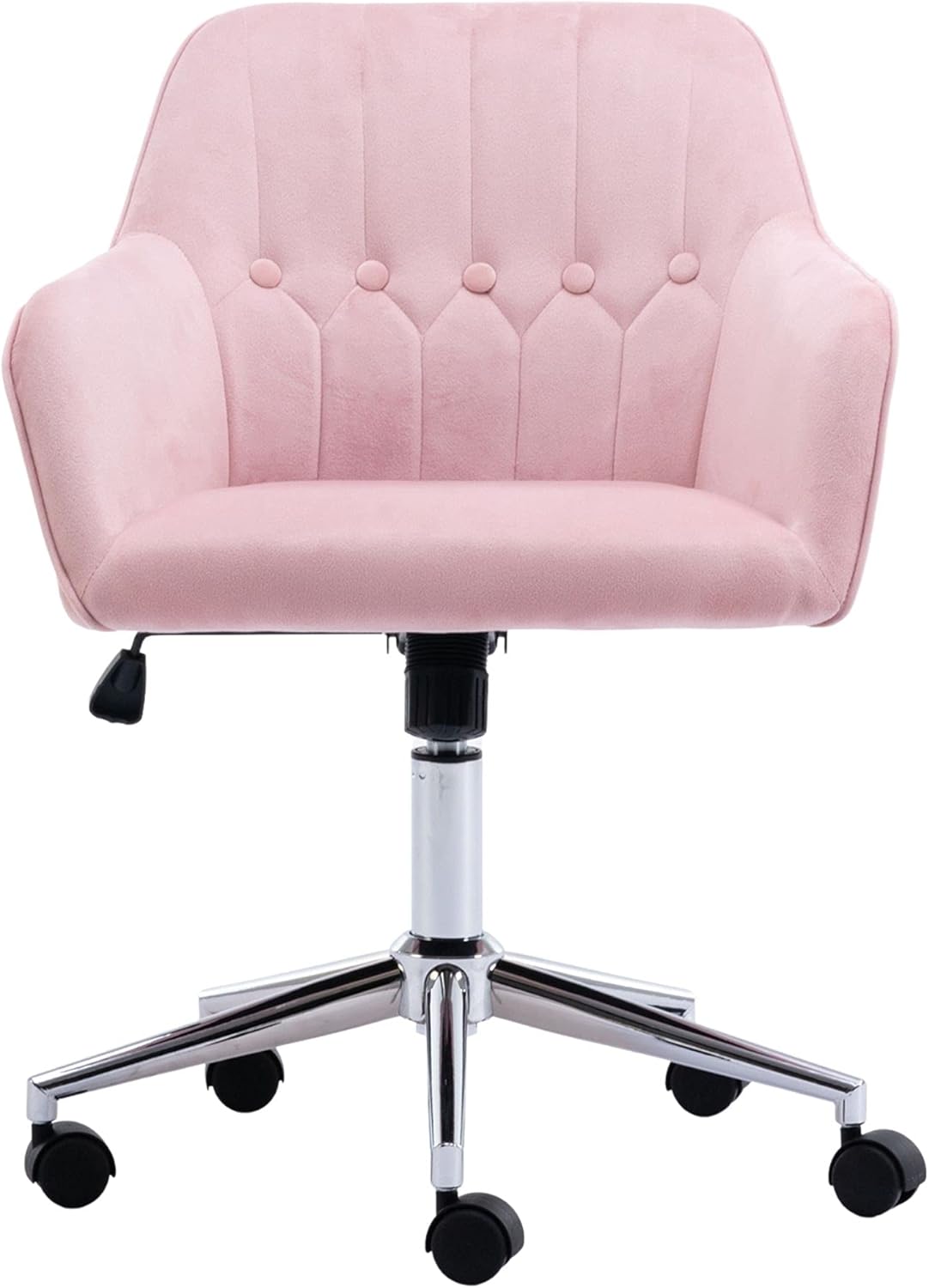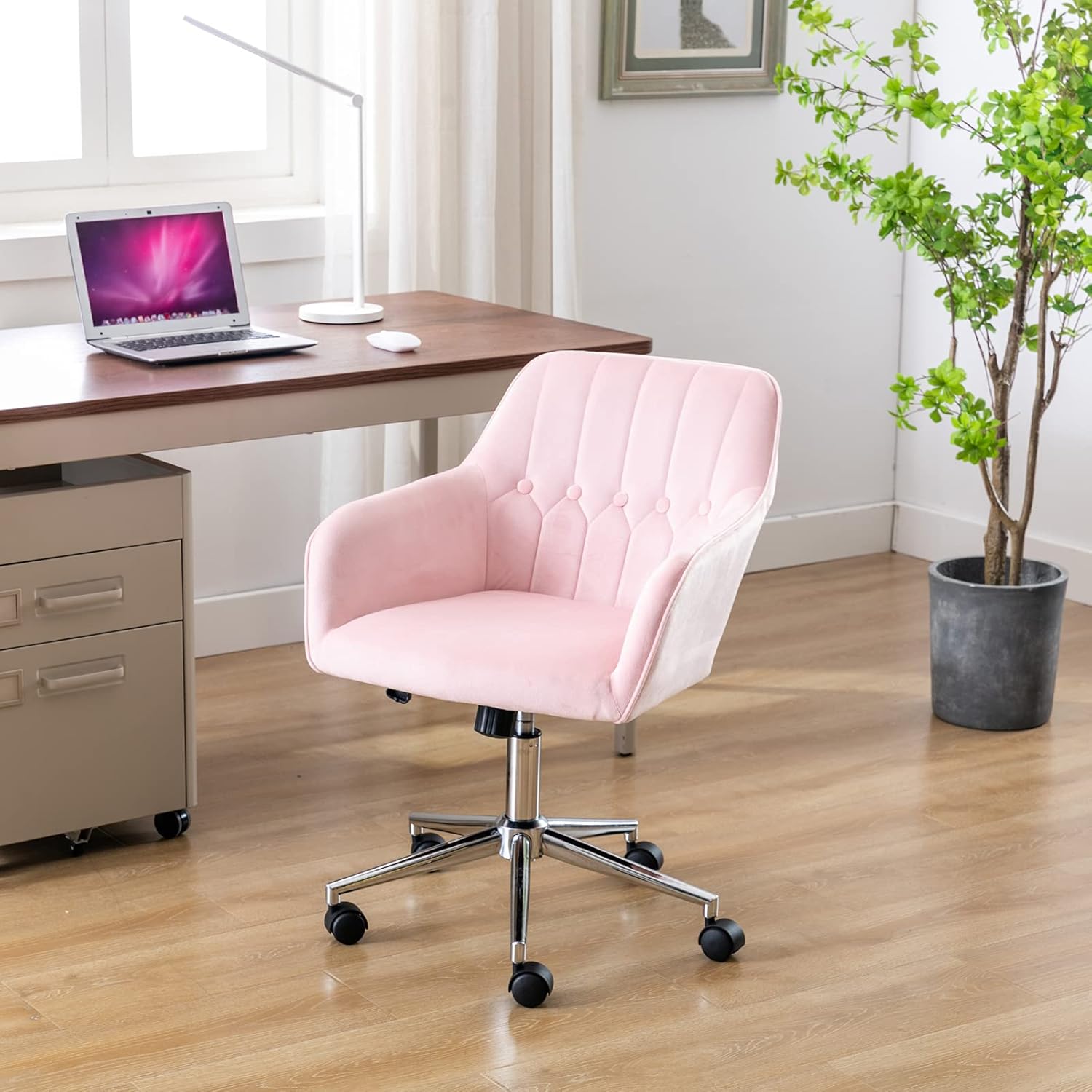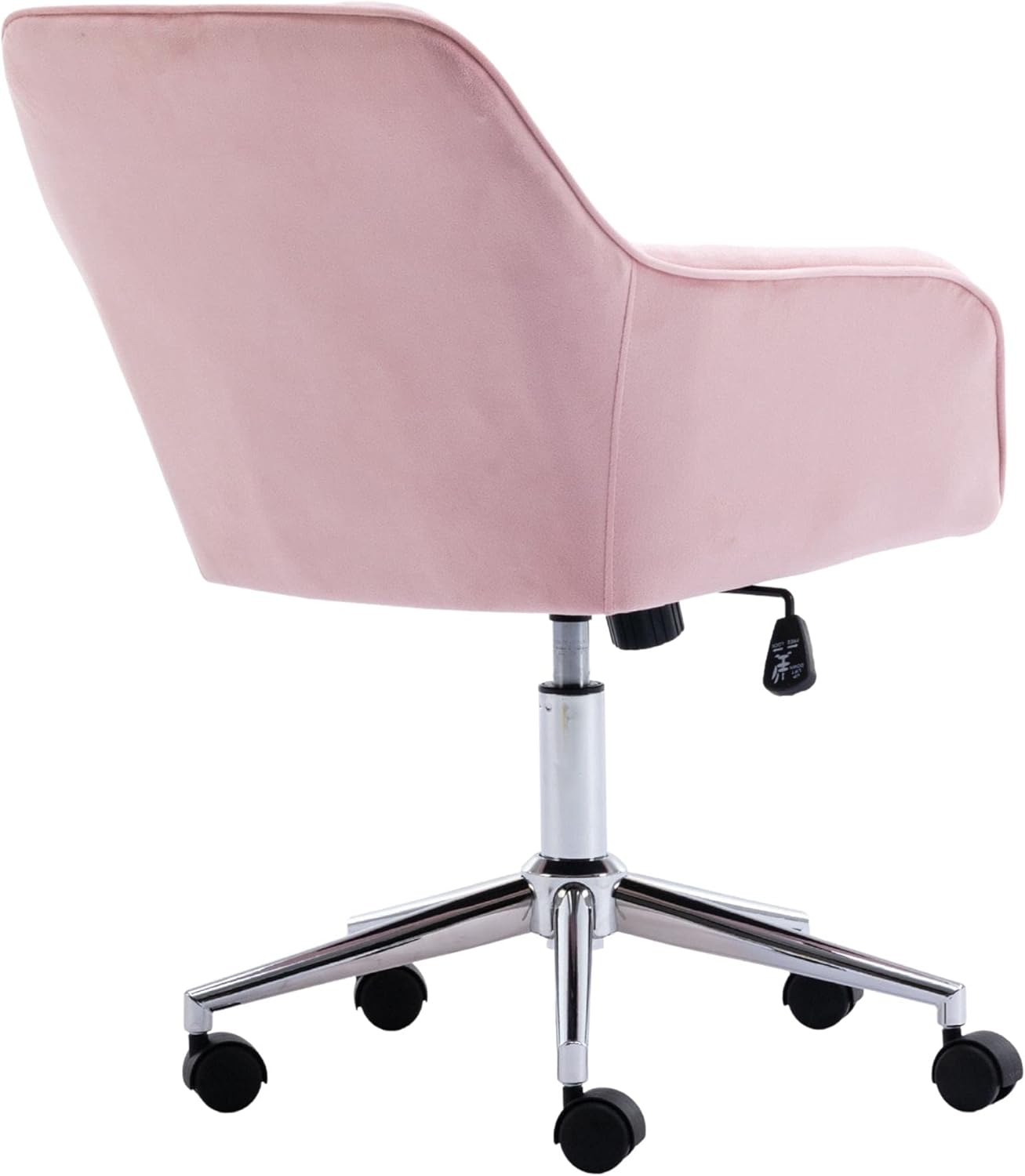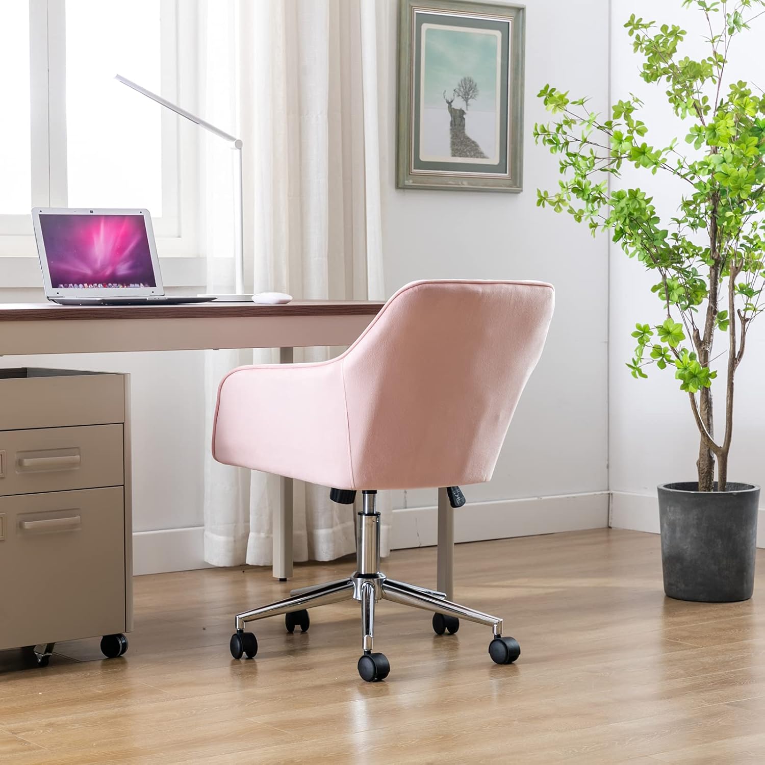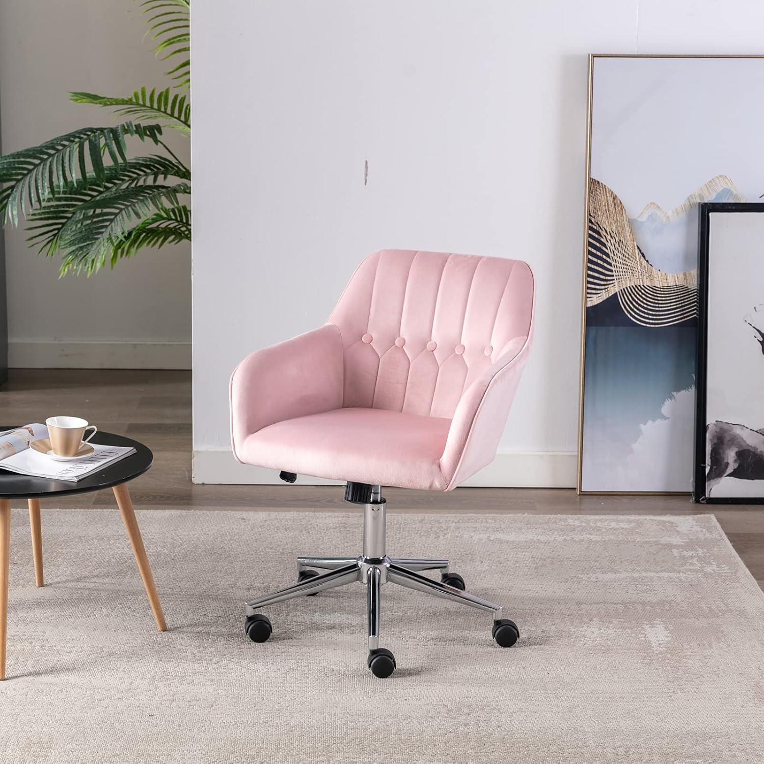 Home Office Desk Chair, Velvet Fabric Modern Accent Chair for Living Room, Swivel Adjustable Vanity Chair for Bedroom (Pink)