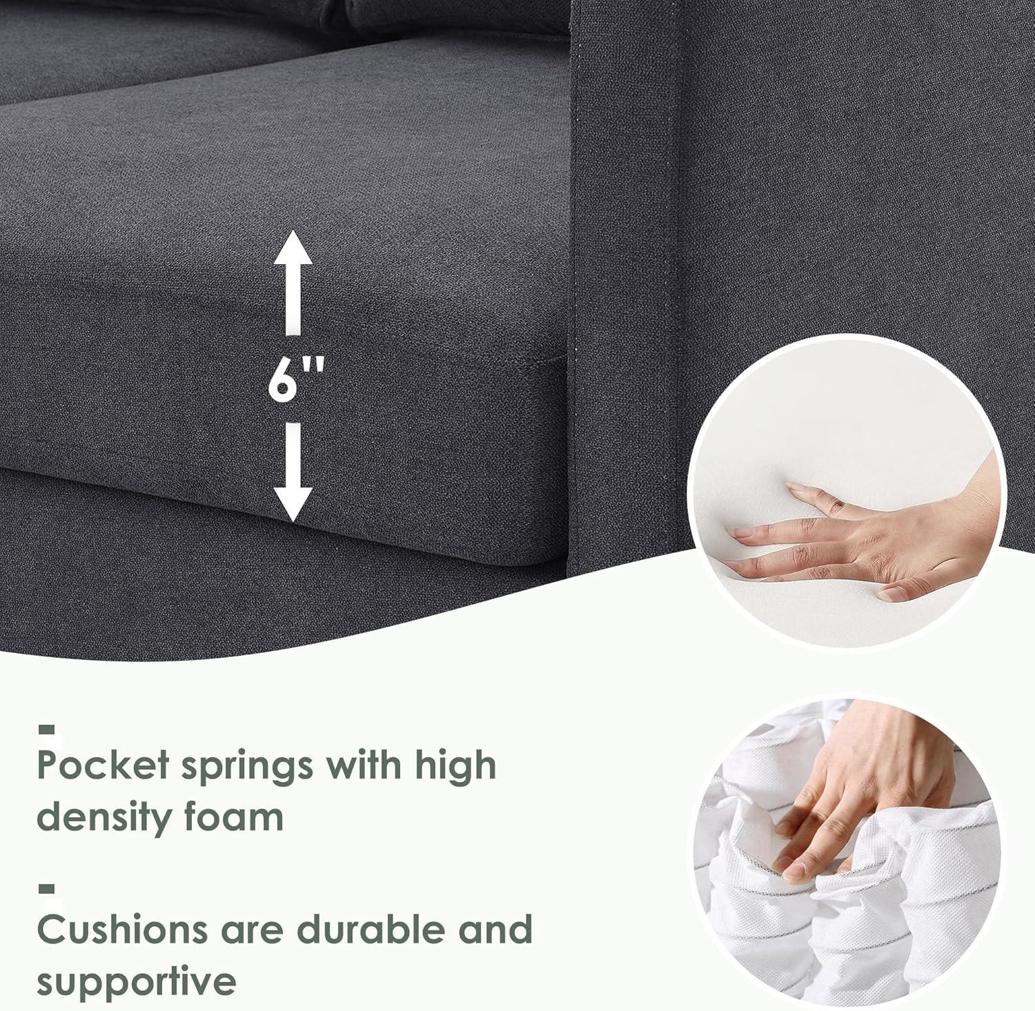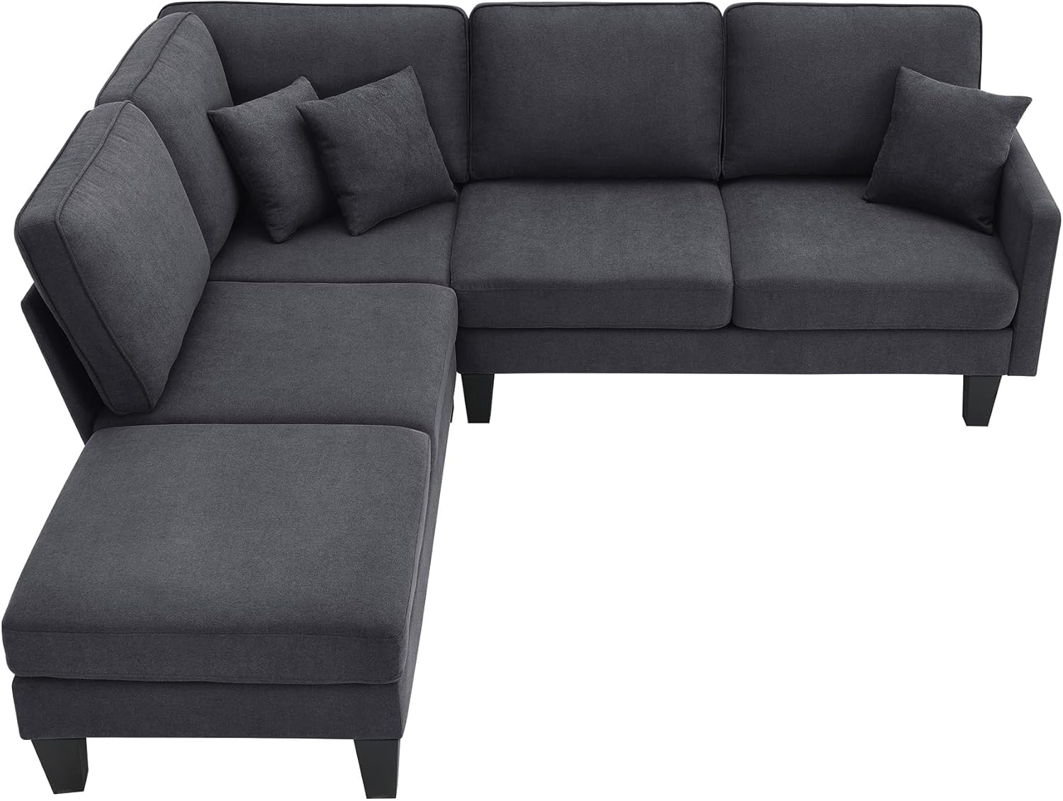 90 * 88"" Terrycloth Modern Sectional Sofa,5 Seat Practical Couch Set with Chaise Lounge,L Shape Minimalist Indoor Furniture with 3 Pillows for Living Room,Apartment,Office, 3 Colors, Grey