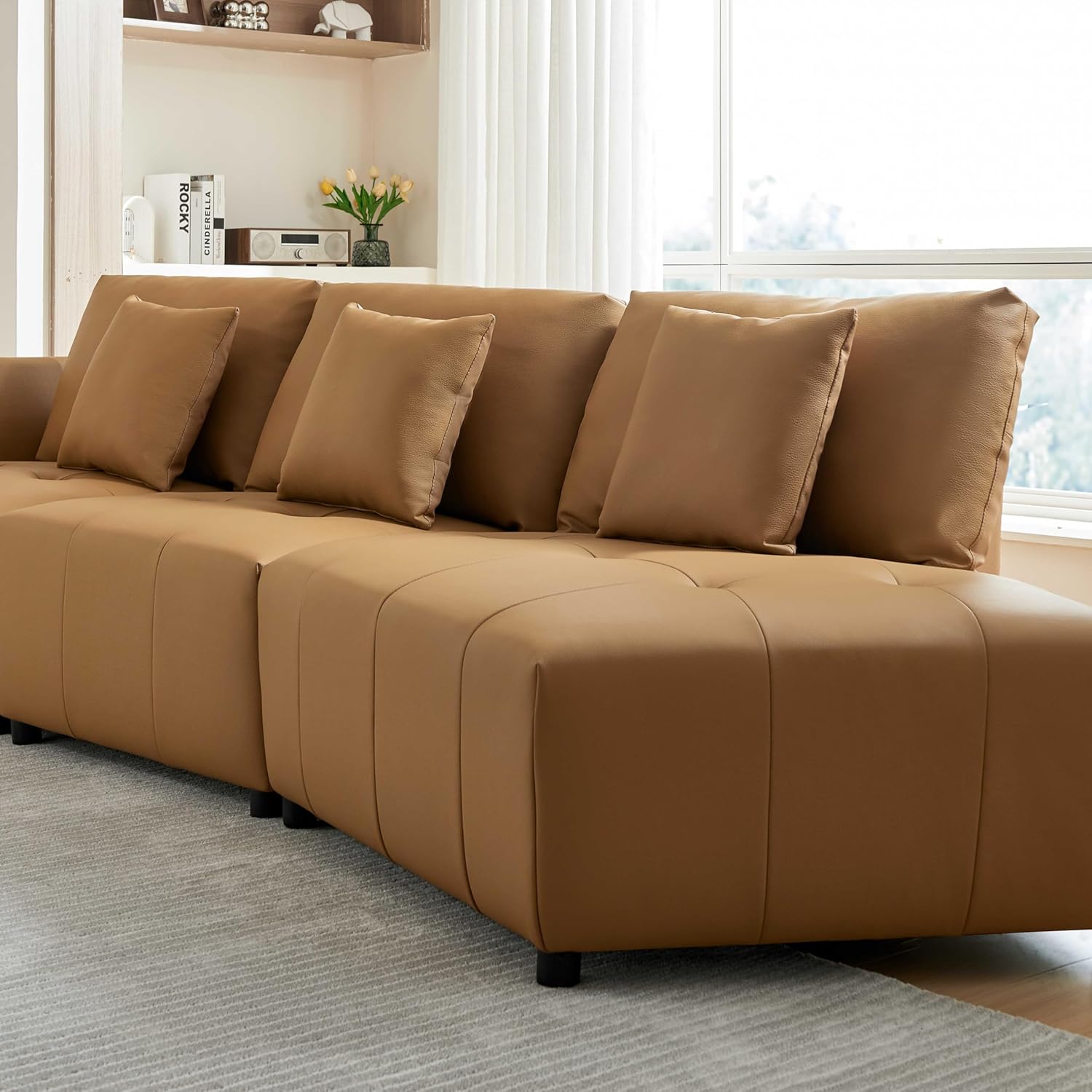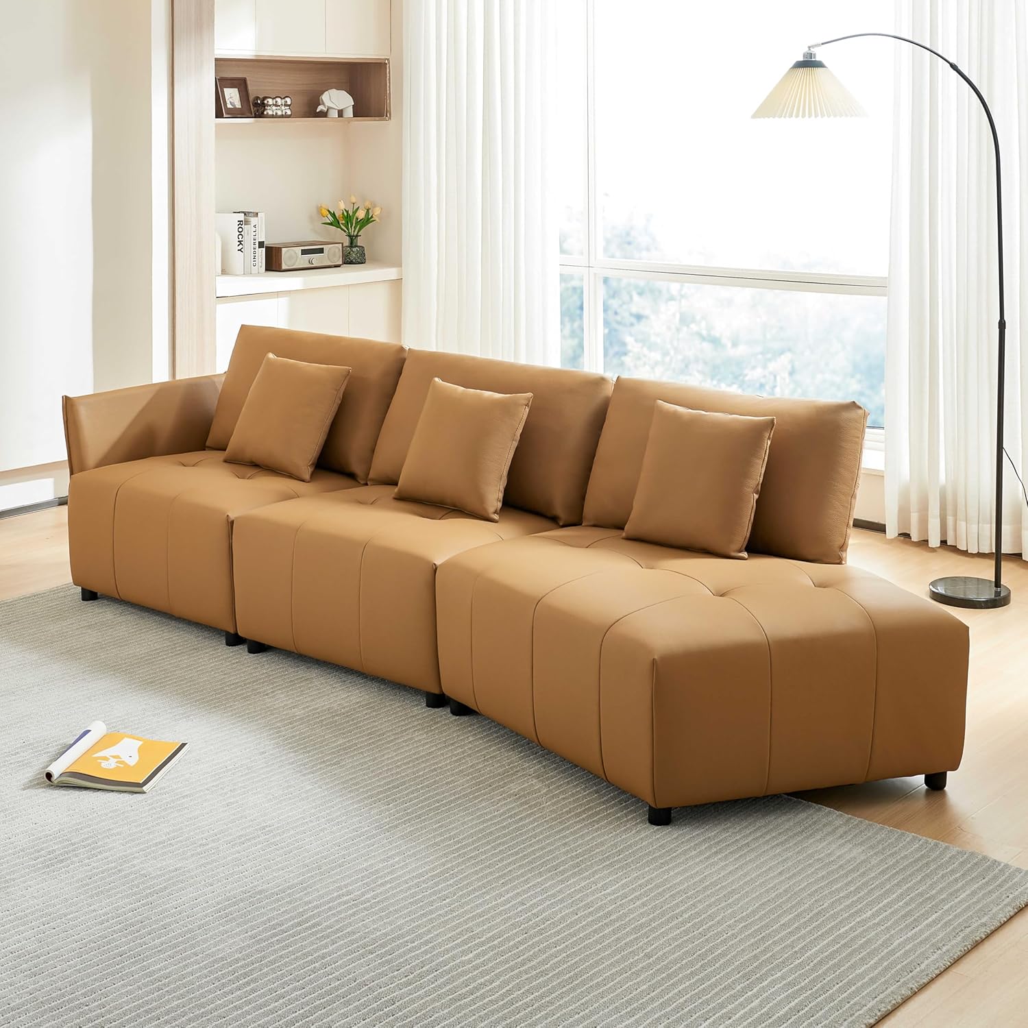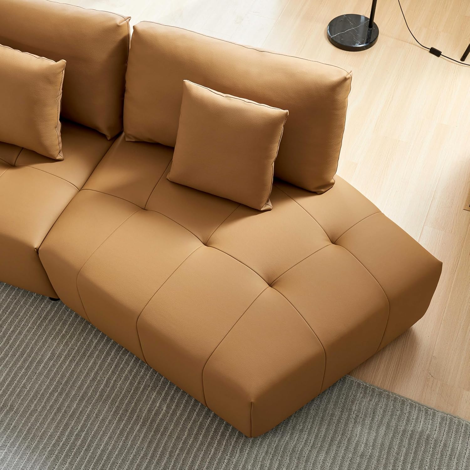 120-Inch Modern Modular Sectional Sofa - Premium Genuine Leather Couch with Curved Design, Comfortable Seat Cushions, Ergonomic Back Support, Perfect for Living Room & Seating for 3-5 People