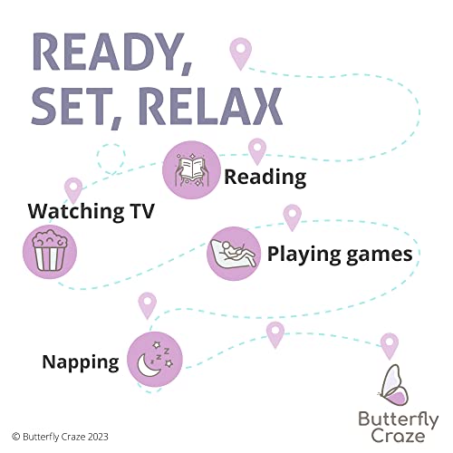 Butterfly Craze Bean Bag Chair Cover, Functional Toddler Toy Organizer, Fill with Stuffed Animals to Create a Jumbo, Comfy Floor Lounger for Boys or Girls, Stuffing Not Included, Grey Stripe