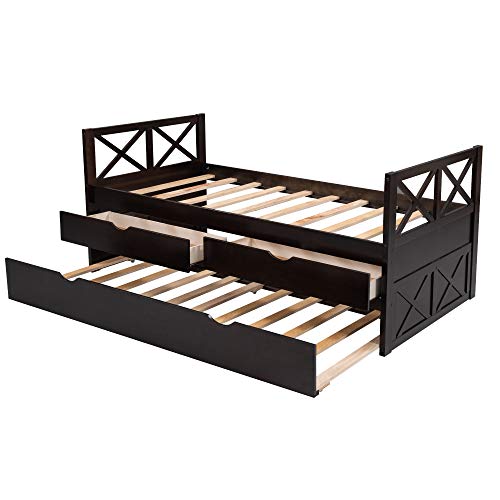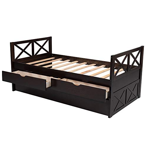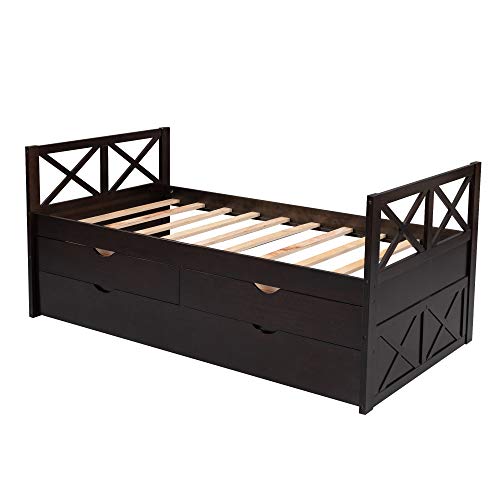 Merax Twin Size Daybed, Wood Twin Daybed with 6 Drawers, Twin Size Platform Bed, Twin Storage Bed Frame, No Box Spring Required, Oak