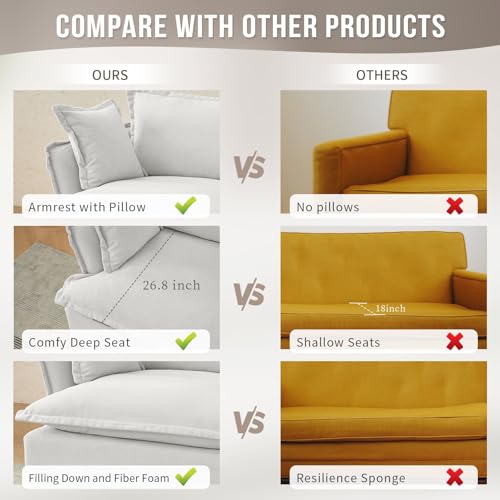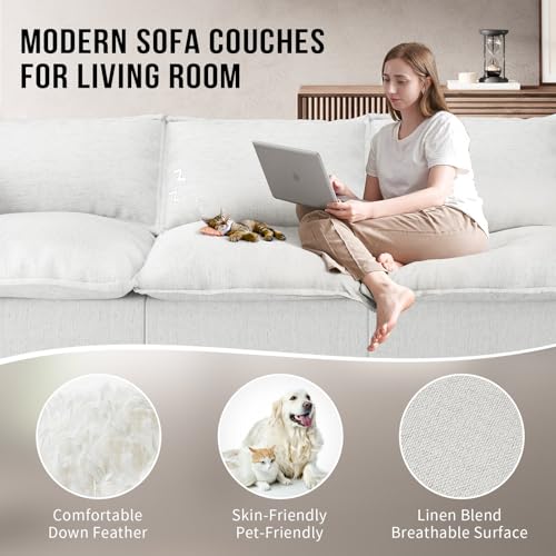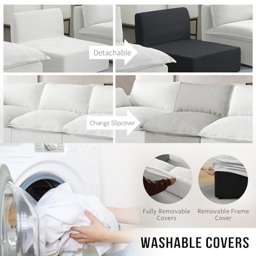 Cloud Modular Sectional Sofa,White 5 Seaters L Shape Down Fill Sectional Convertible Deep Seat Modular Couch with Ottoman,Detachable Couch Cushion Covers Sofa for Living Room