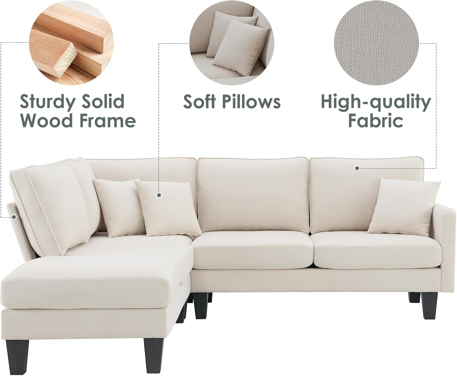 90" Modern Sectional Sofa,5-Seat Practical Couch Set with Chaise Lounge,L-Shape Minimalist Indoor Furniture with 3 Pillows for Living Room,Apartment,Office,Beige