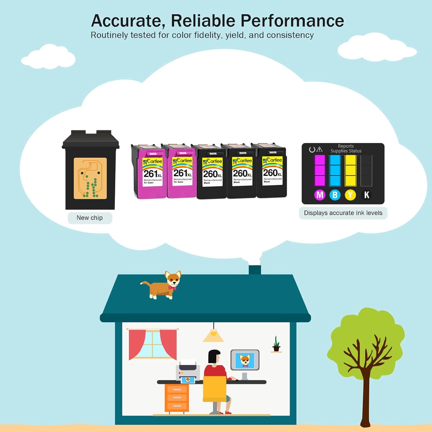 Cartlee Compatible Ink Cartridges Replacement for Canon 260 and 261 Ink Cartridges for Canon TS6420 Ink Cartridges for Canon Ink 260xl 261 Cartridges for Canon TS6400 Ink Cartridges PG-260 5 Pack