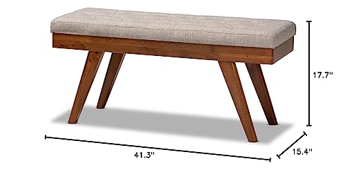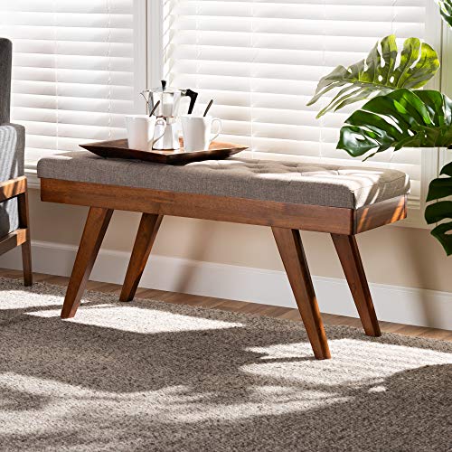 Baxton Studio Alona Mid-Century Modern Medium Grey Fabric Upholstered Wood Dining Bench