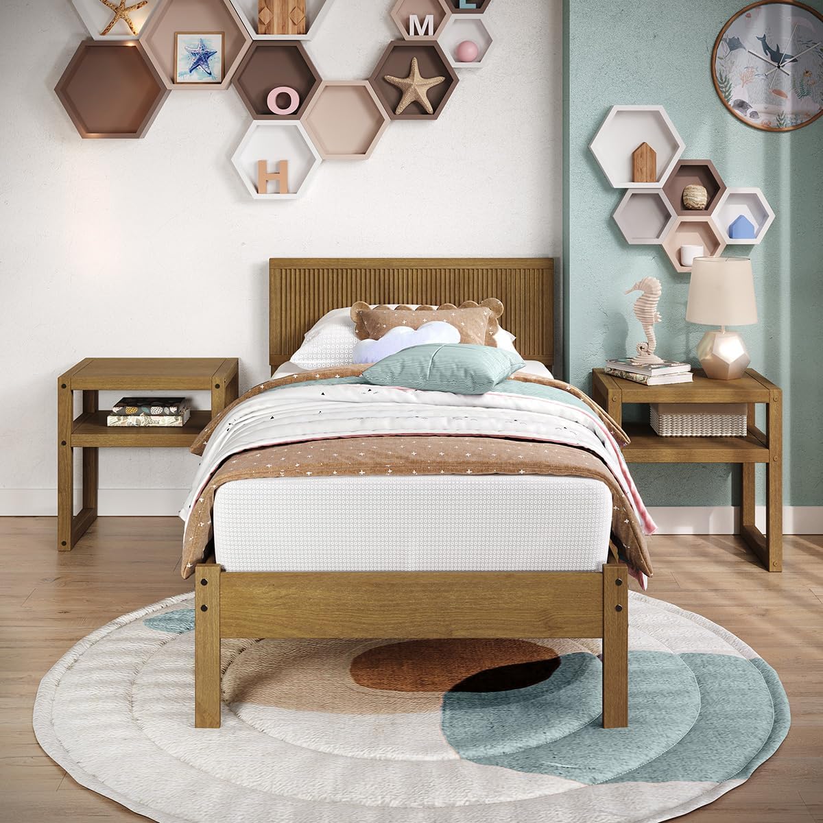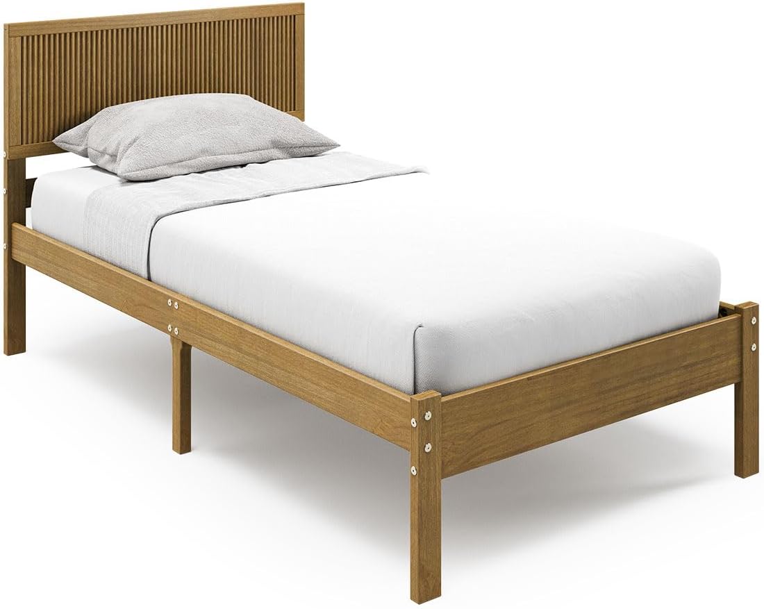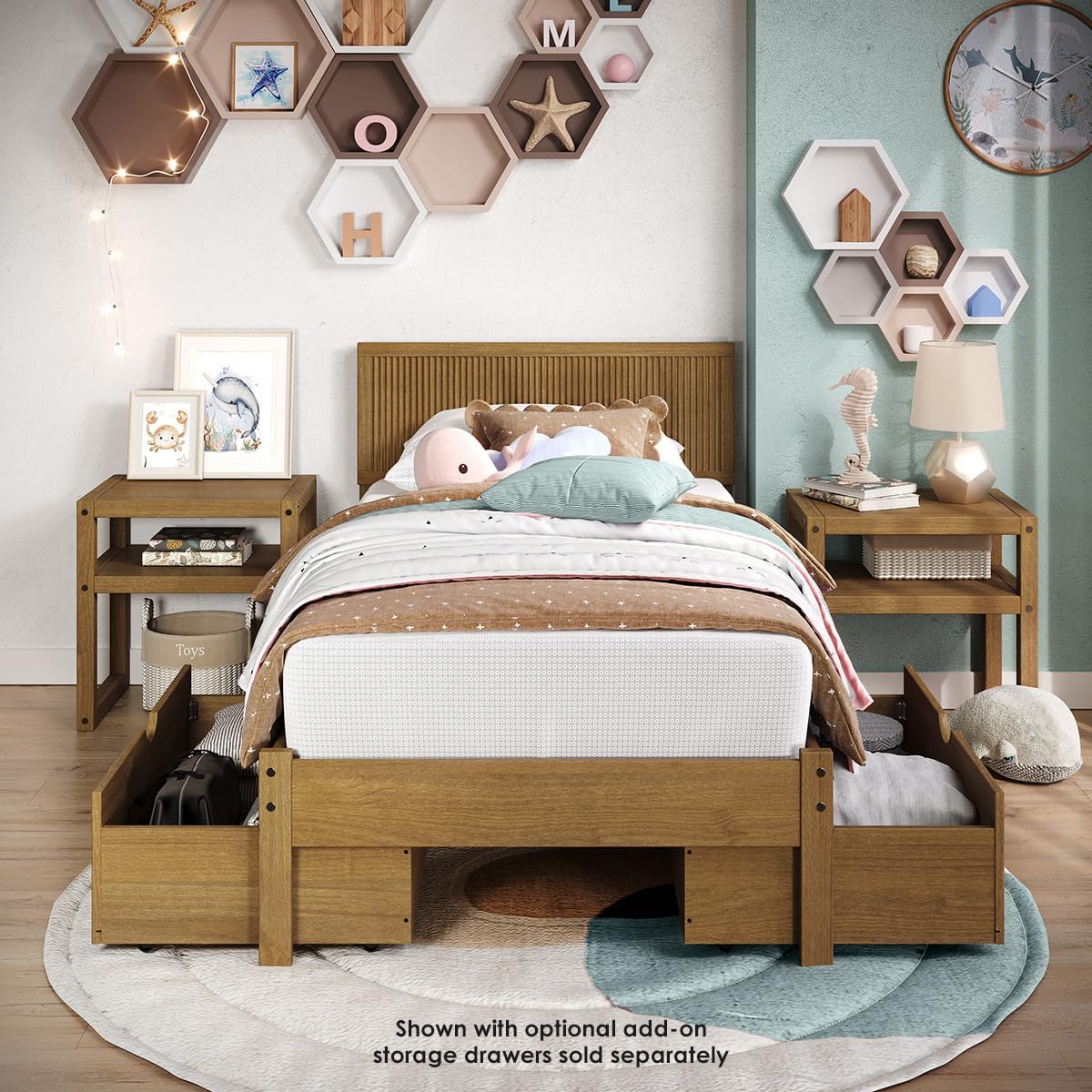 P'Kolino Natural Oak Reeded Wood Twin Bed - Solid Pine Wood - FSC Certified - for kids, teens, adults