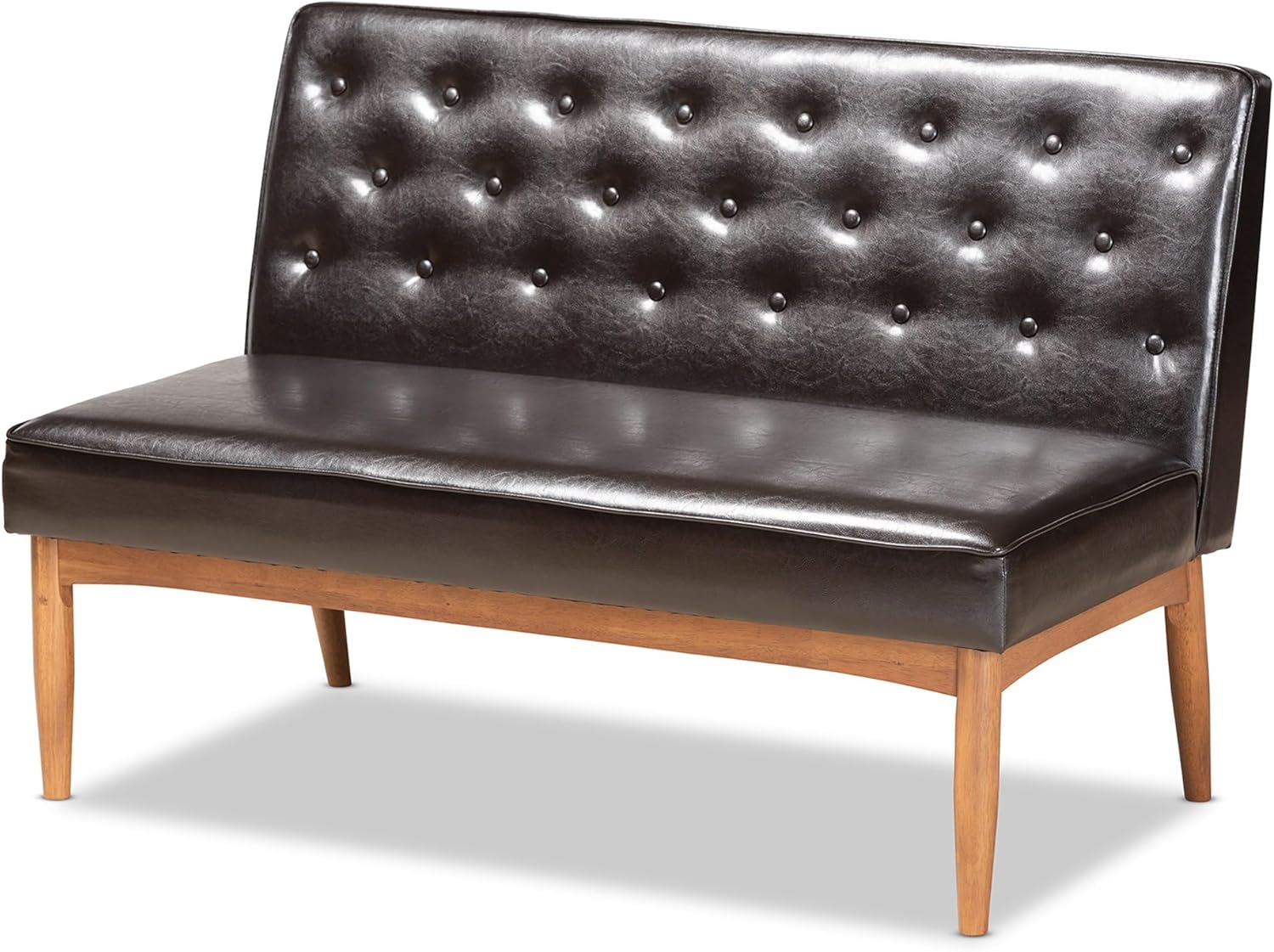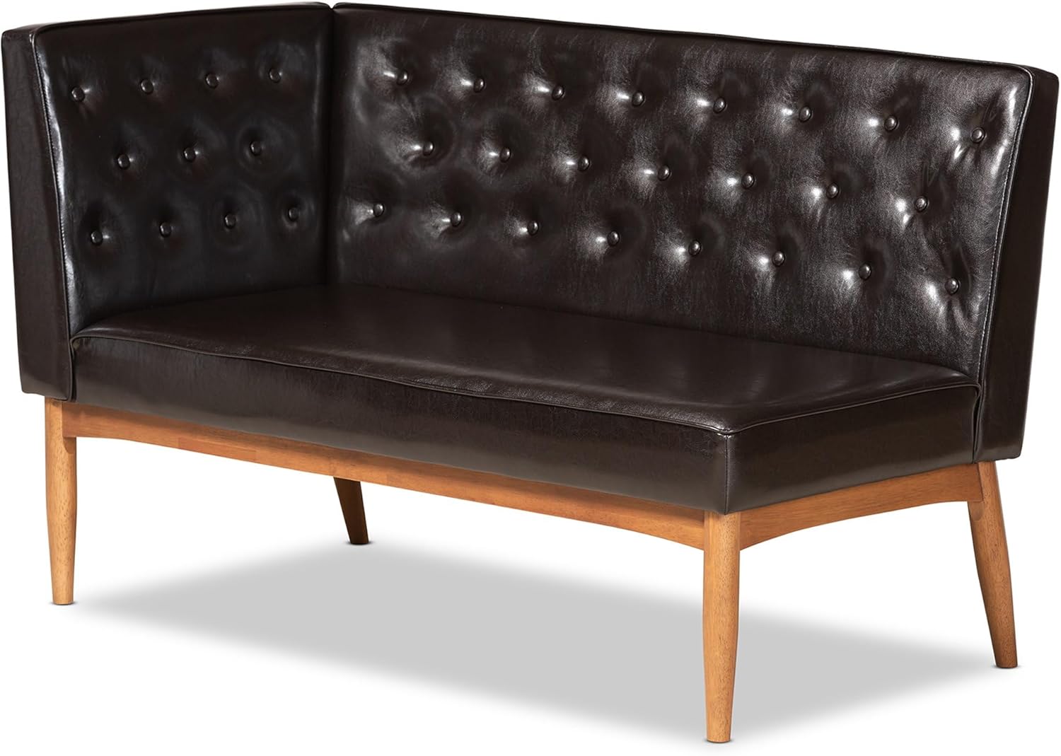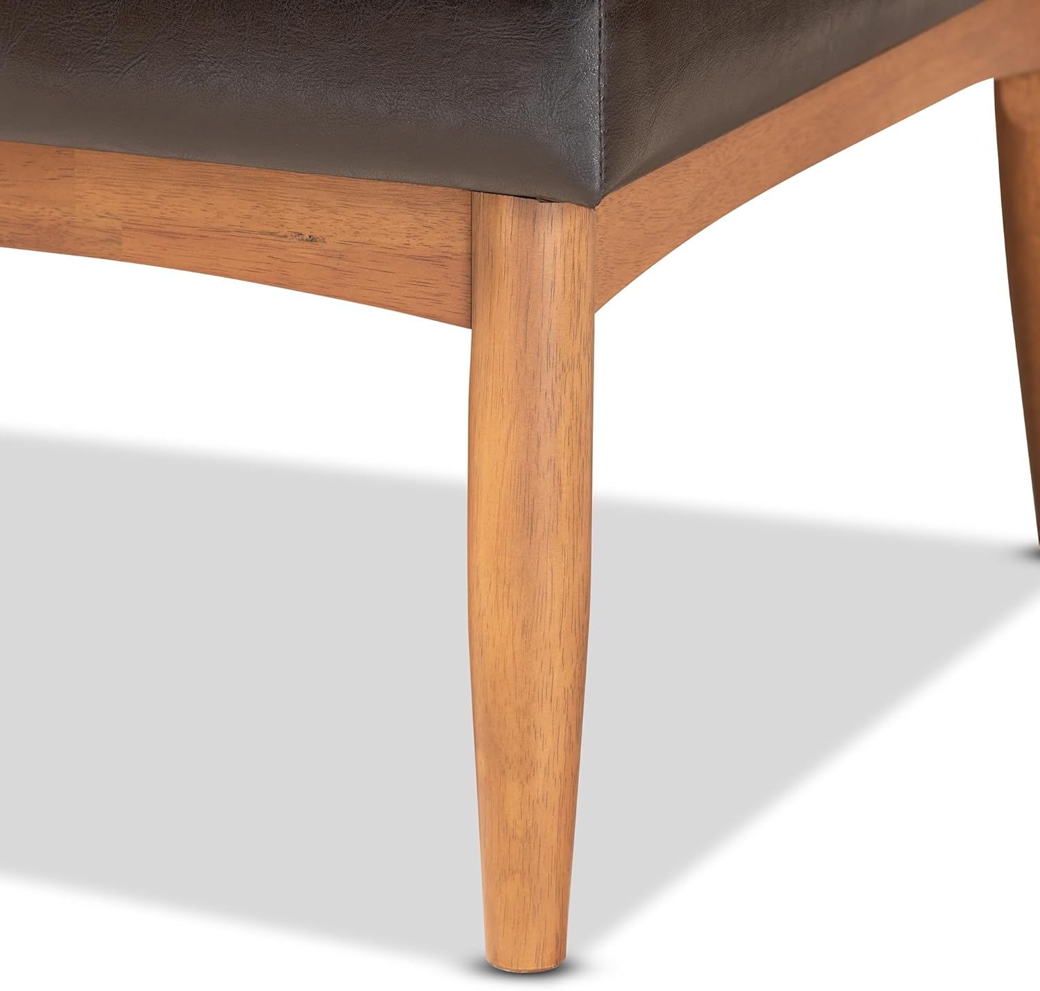 Baxton Studio Riordan Mid-Century Modern Dark Brown Faux Leather Upholstered and Walnut Brown Finished Wood 2-Piece Dining Nook Banquette Set