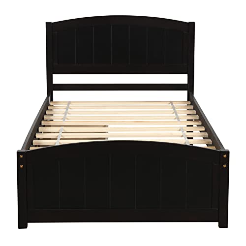 Twin Size Platform Bed Frame with Two Drawers and Headboard,Wood Slats Support,Solid Pinewood Bedframe,No Box Spring Needed,for Boys/Girls/Adult Bedroom, Gray