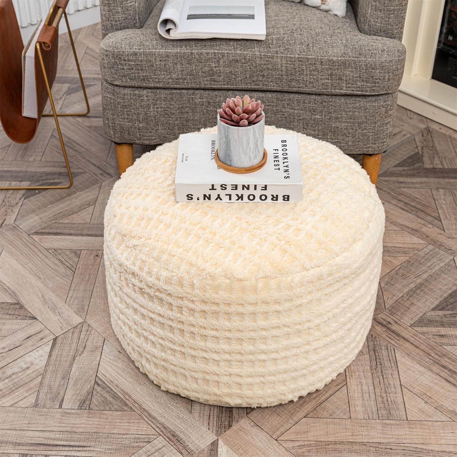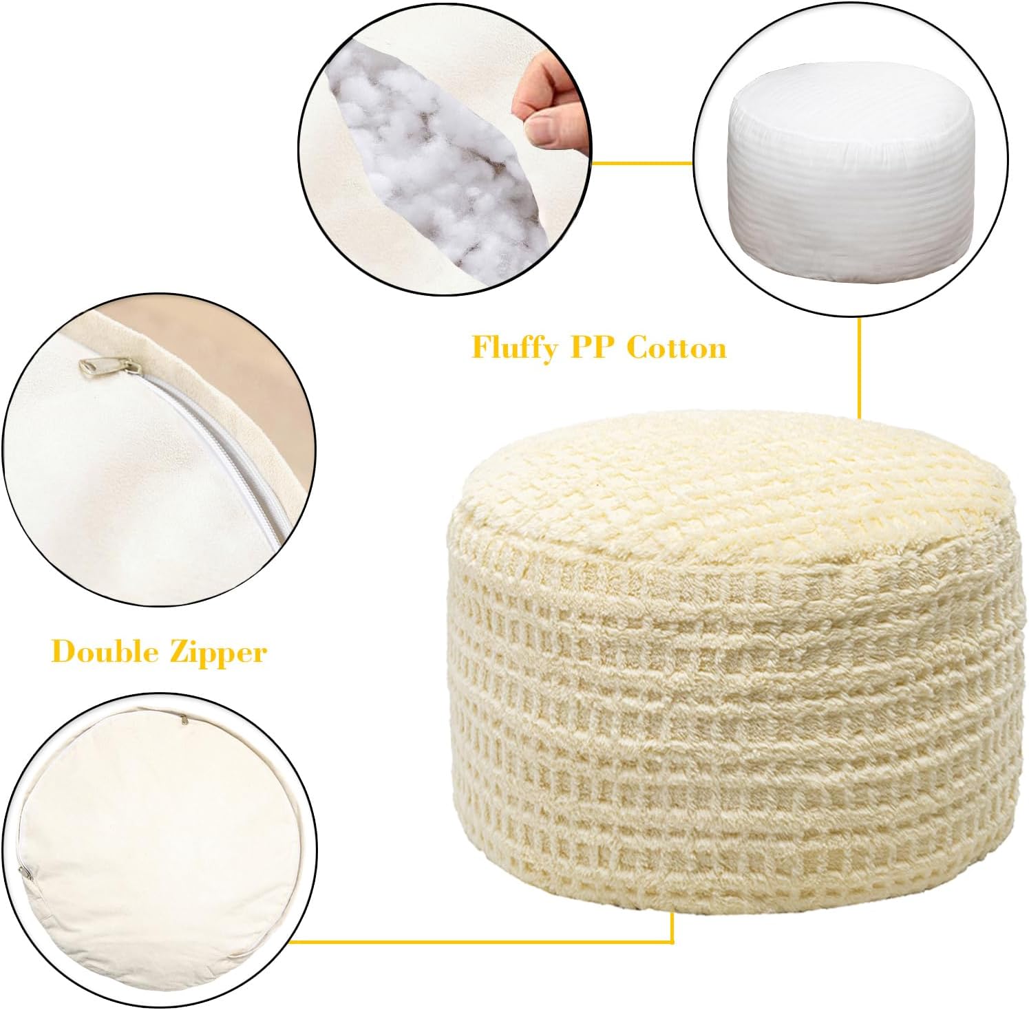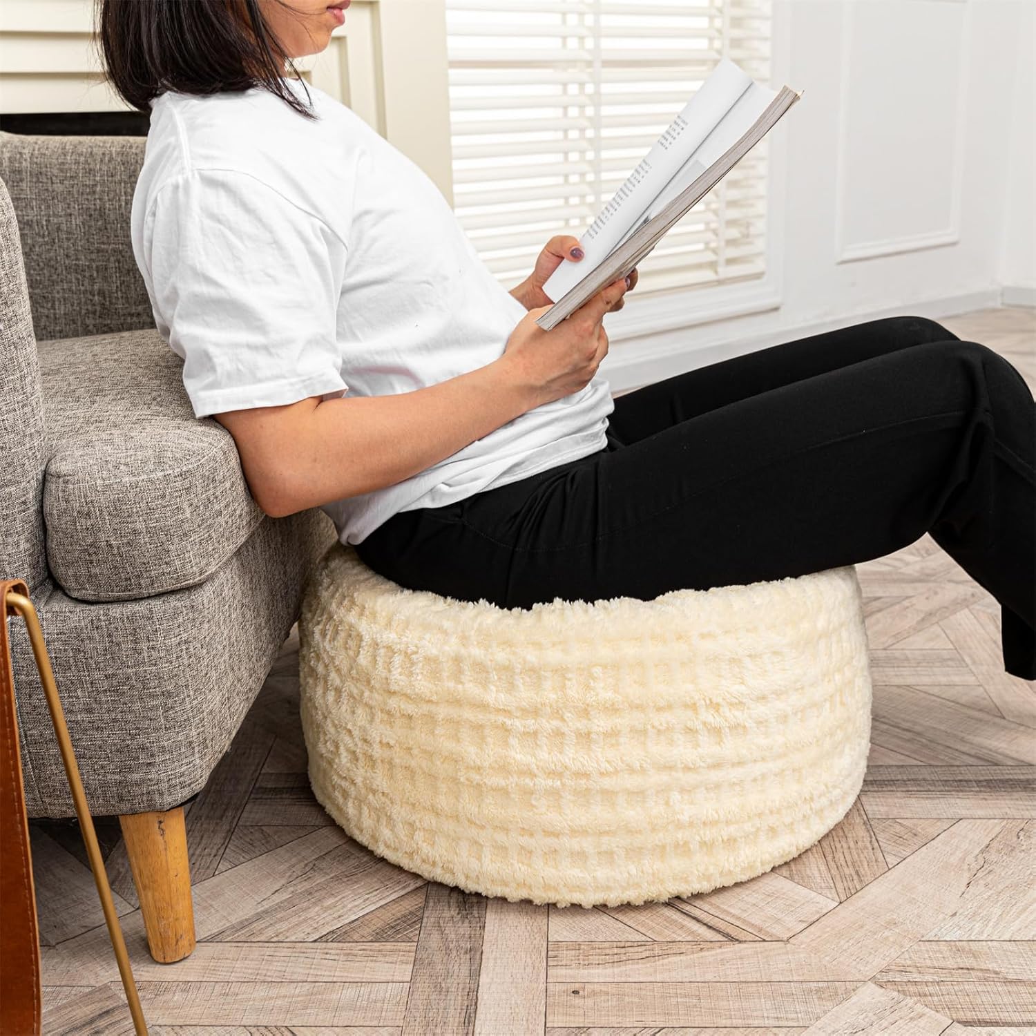 Pouf Ottoman Stuffed, Stuffed Ottoman Foot Rest,Pouf Foot Stool with Filler, 20"x20"x12" Inches Fuzzy Chair, Floor Pouf Chair,Foot Rest with Storage for Living Room, Bedroom (Ivory Pouf with Filler)