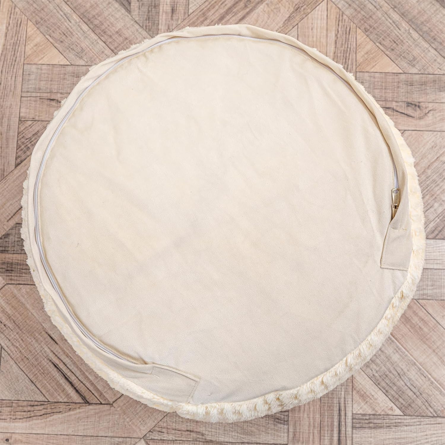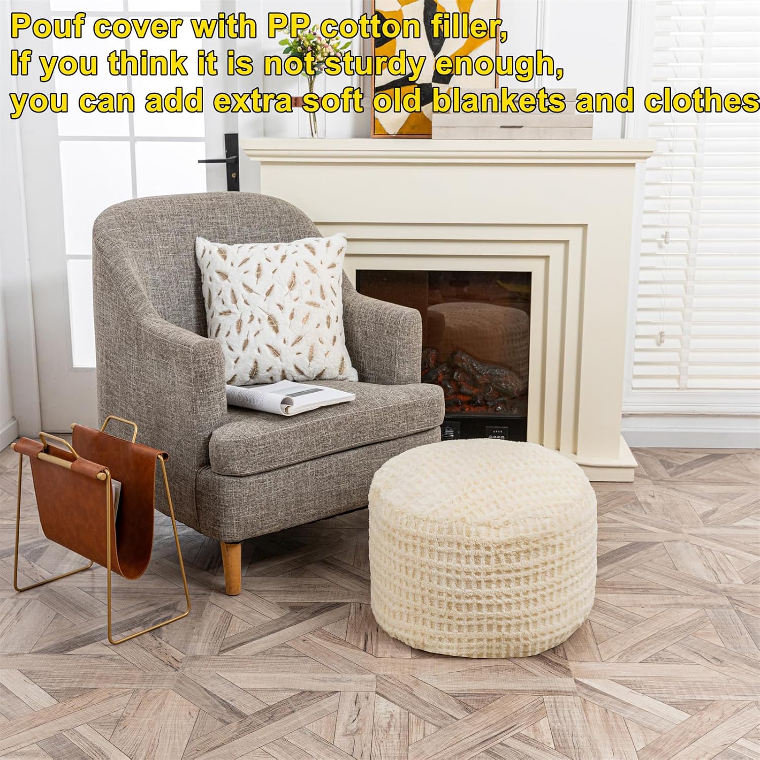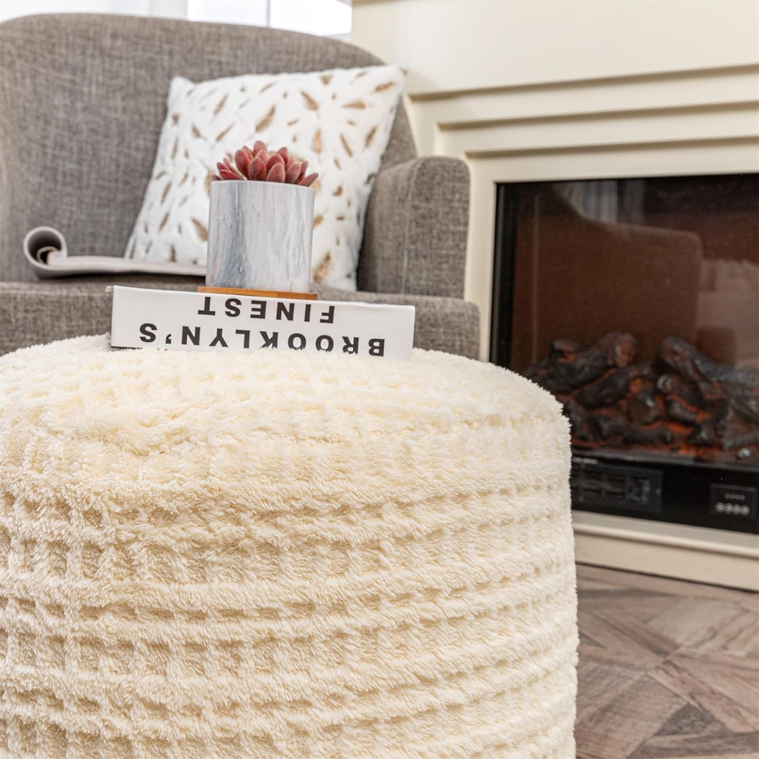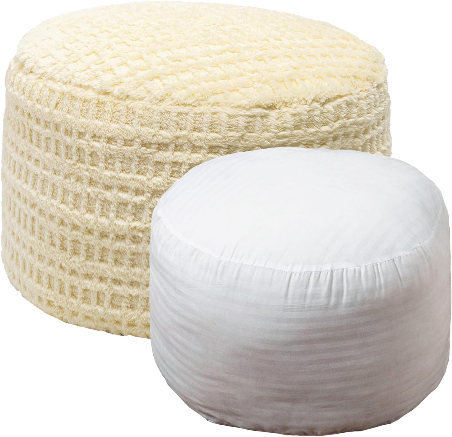 Pouf Ottoman Stuffed, Stuffed Ottoman Foot Rest,Pouf Foot Stool with Filler, 20"x20"x12" Inches Fuzzy Chair, Floor Pouf Chair,Foot Rest with Storage for Living Room, Bedroom (Ivory Pouf with Filler)