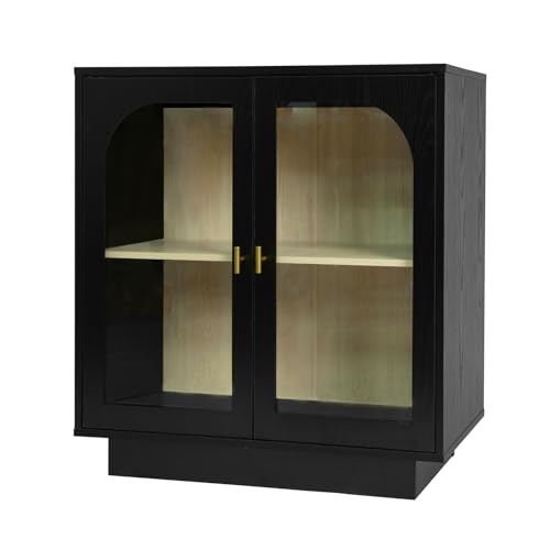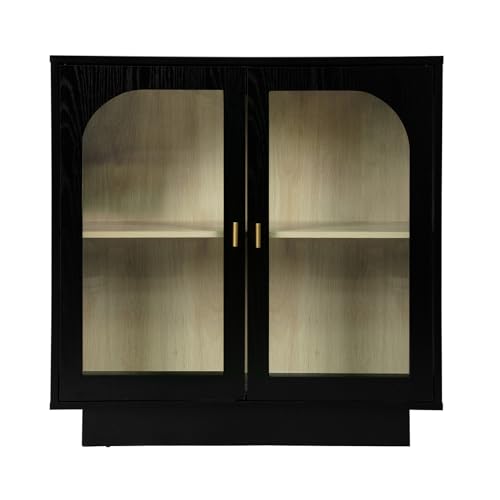 Sideboard Buffet Cabinet with Storage - Accent Storage Cabinet Modern Furniture, 2 Door Glass Cabinet with Adjustable Shelf, Wood Credenza for Living Room, Bedroom, Dining Room (White)