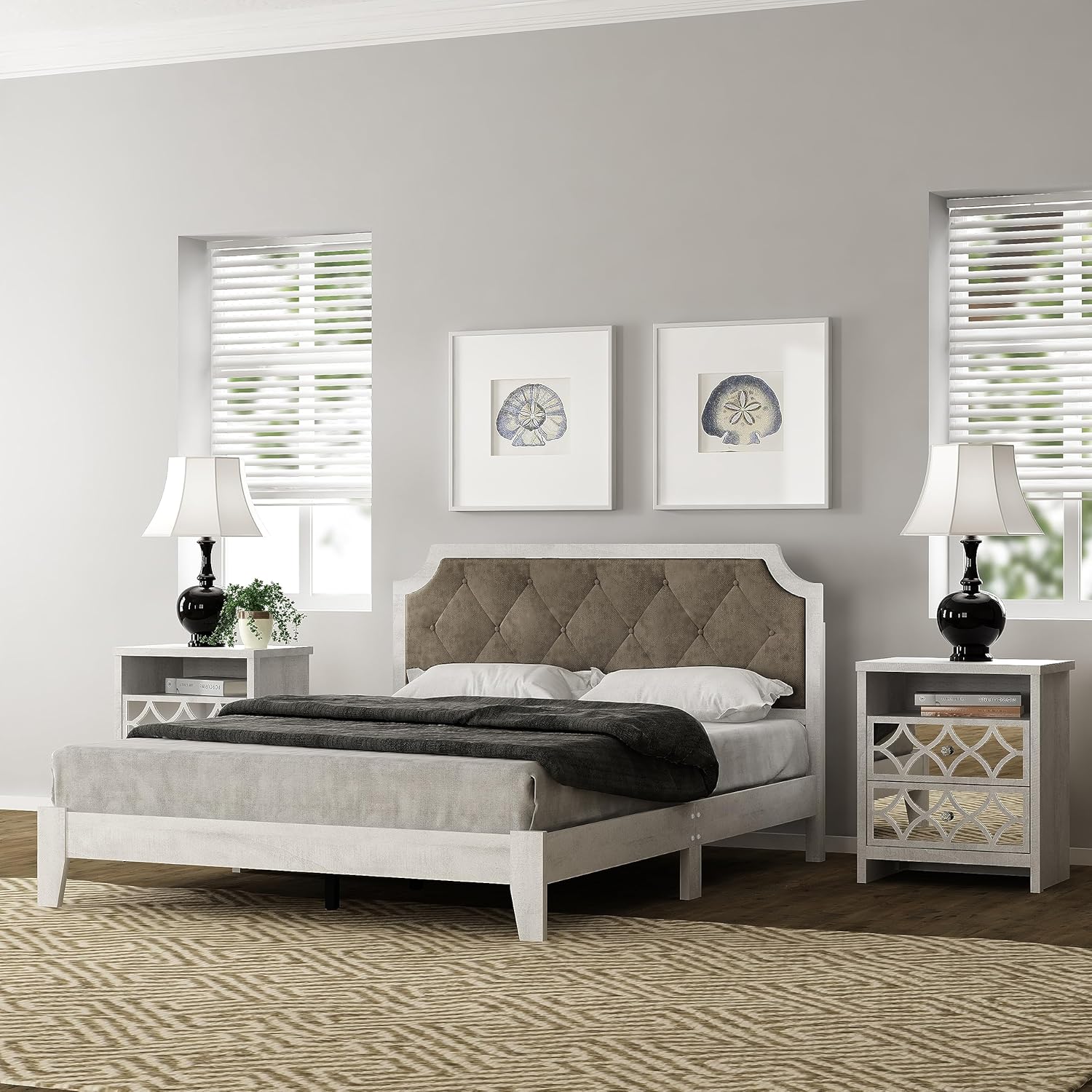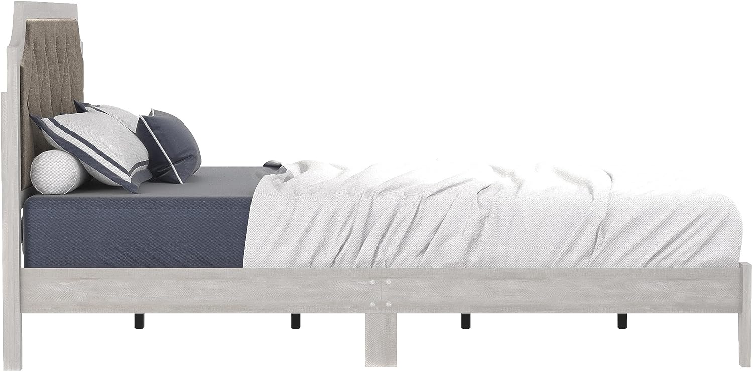 Galano Annifer Queen Platform Bed Frame with Cushioned Upholstered Headboard & Wooden Slats Support, Mattress Foundation, No Box Spring Needed, 62.99" D x 84.49" W x 41.54" H, Dusty Grey Oak