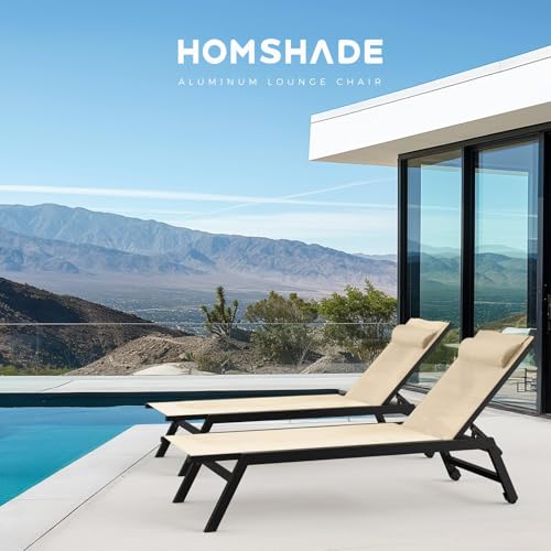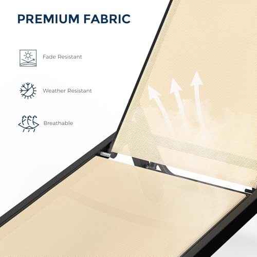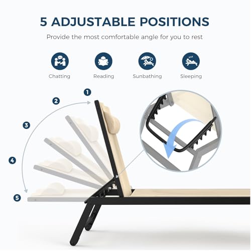 Outdoor Aluminum Lounge Chair -Set of 2 with 5 Position Adjustable Backrest, Textilene Fabric, Two Wheels, Headrest for Pool, Beach, Turquoise