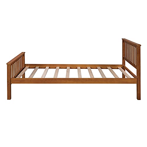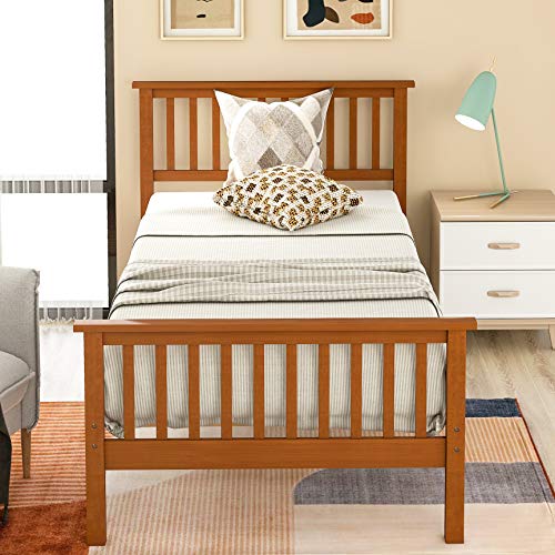 Harper & Bright Designs Twin Bed Frame Wood Platform Twin Bed No Box Spring Required with Headboard and Footboard for Kids (Oak Bed Frame)