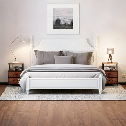 Topeakmart Nightstands Set of 2, End Tables with Storage Shelf for Bedroom/Living Room/Small Space, Industrial Side Table with Metal Frame, Snack Table for Coffee Laptop