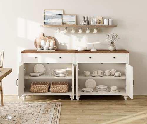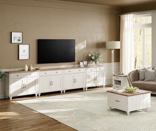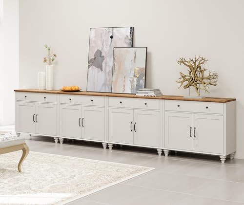 WAMAPT Buffet Cabinet with 8 Doors and 4 Drawers, Large Coffee Bar Tables Wood Kitchen Storage Cabinets, Modern Farmhouse Sideboard Credenza for Dining Room, Off White, 136 inch