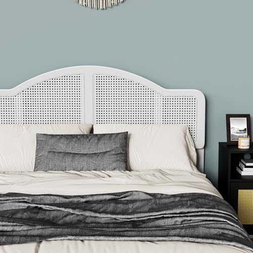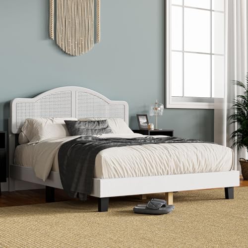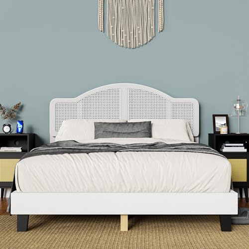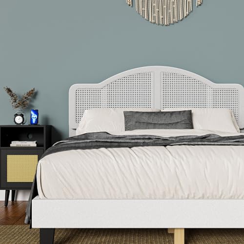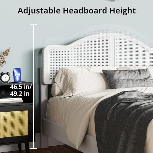 Cozy Castle Rattan Queen Size Bed Frame with Adjustable Headboard and Sturdy Slats Support, Boho Queen Platform Bed Frame, No Box Spring Needed, Black