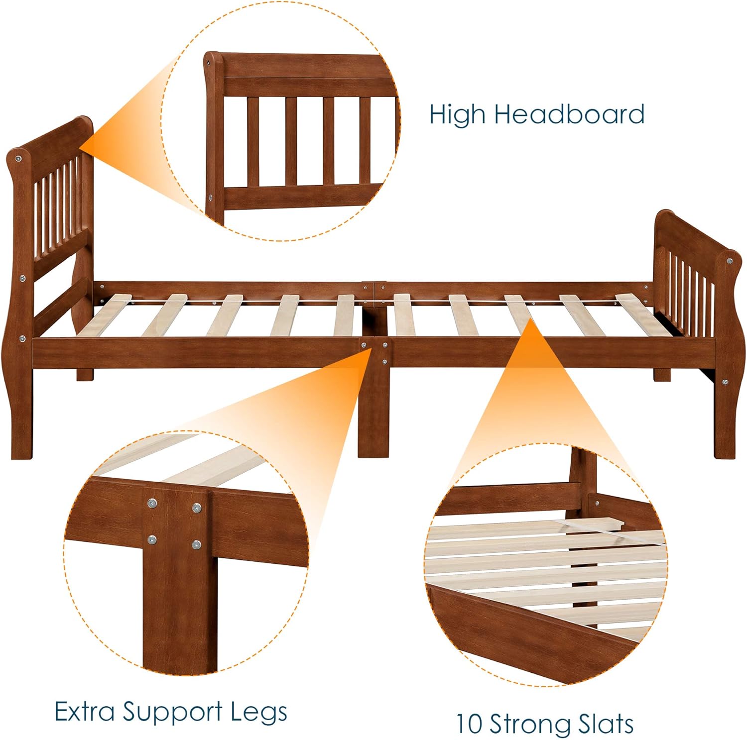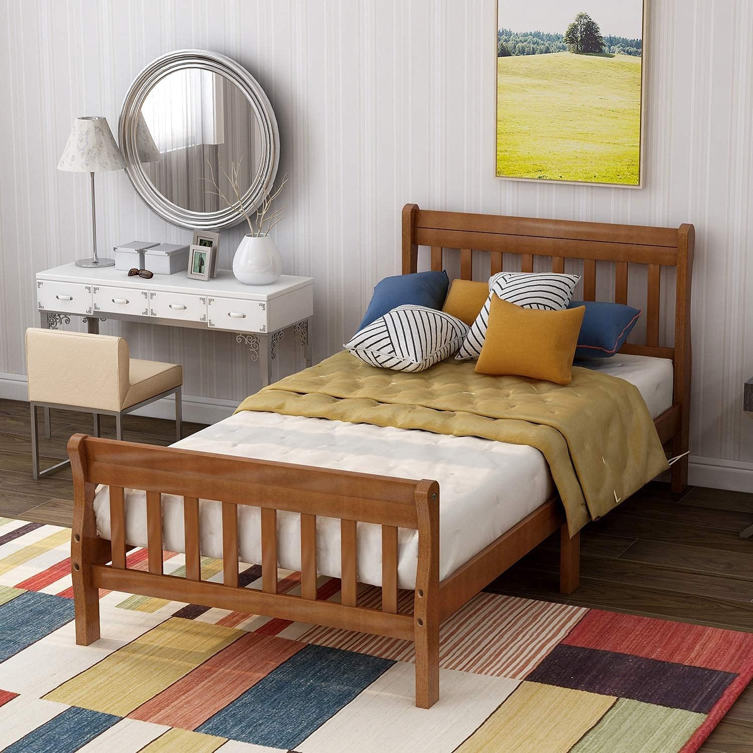 Harper&Bright Designs Twin Sleigh Bed Frame Wood Twin Size Platform Bed for Kids with Headboard and Footboard- Oak Stripe