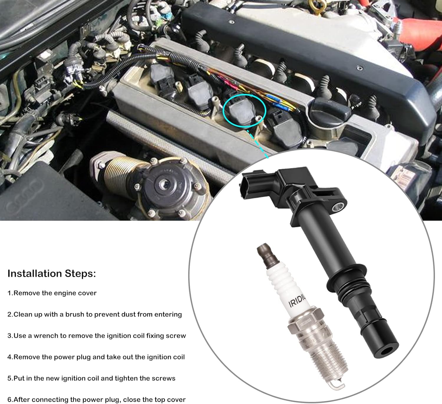 Set of 6 New Ignition Coil on Plug Pack With Boot Compatible with Aspen Dakota/Durango/Nitro Commander/Grand Cherokee/Liberty Mitsubishi Raider 3.7L V6 4.7L V8