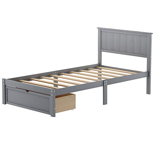 Twin Size Platform Storage Bed with 3 Drawers, Solid Wood Bed Frame, No Box Spring Needed, Oak,Bed Frame