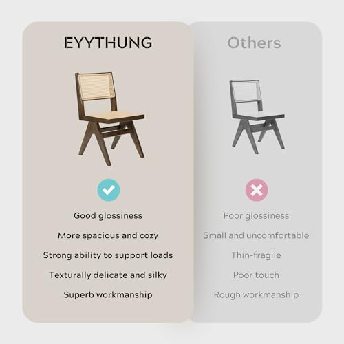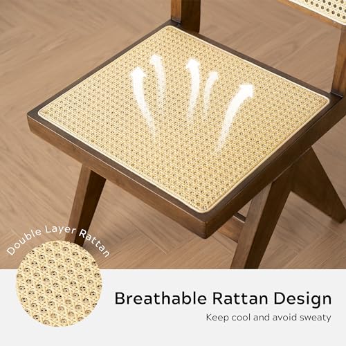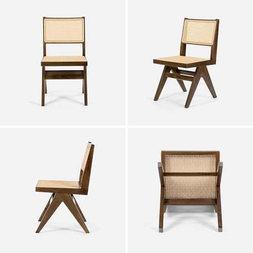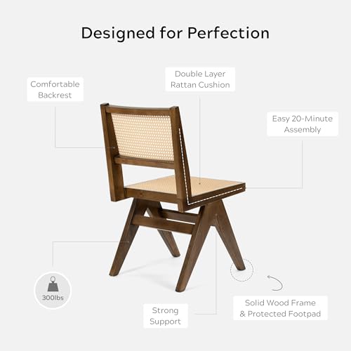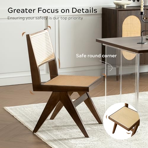 Rattan Dining Chair Mid Century Modern Cane Kitchen Chair Farmhouse Retro Solid Wooden Armless Side Chair for Dining Room, Living Room, Walnut