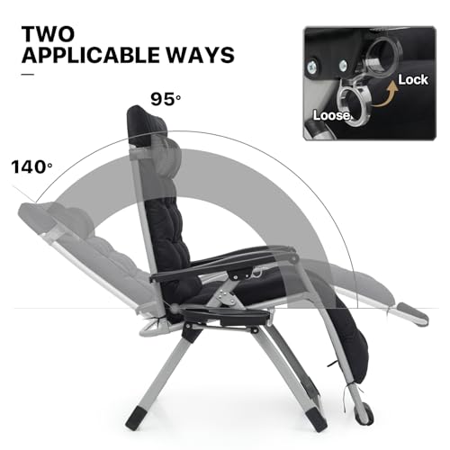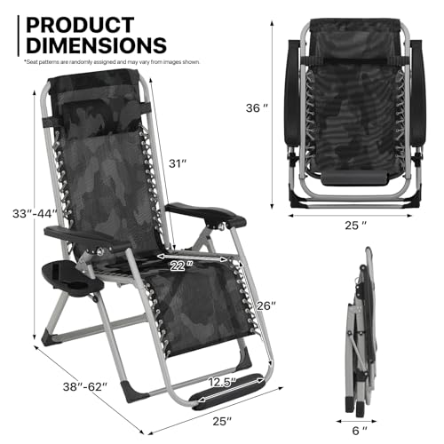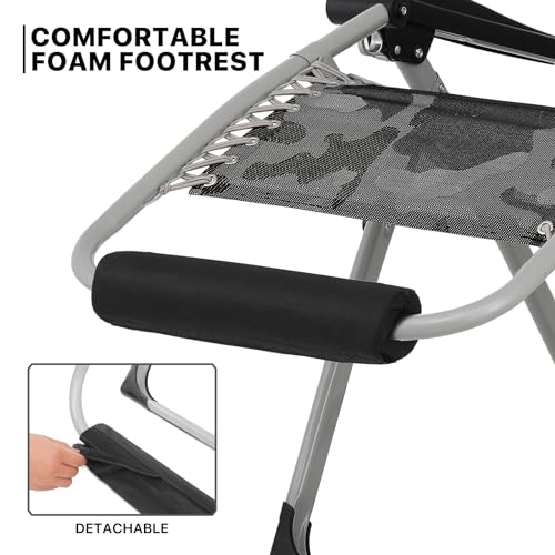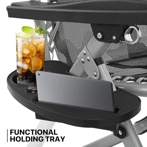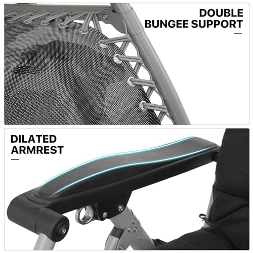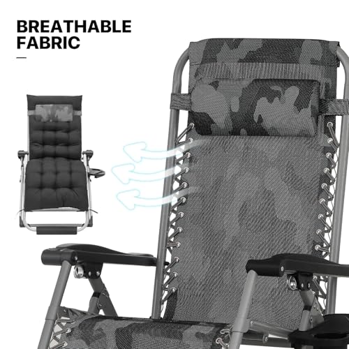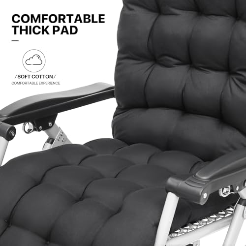 MoNiBloom Zero Gravity Lounge Chairs Set of 2 with Cushion, Padded Patio Anti Gravity Recliner, Foldable Outdoor Lounger with Cup Holder Tray, Headrest and Footrest for Beach Camping